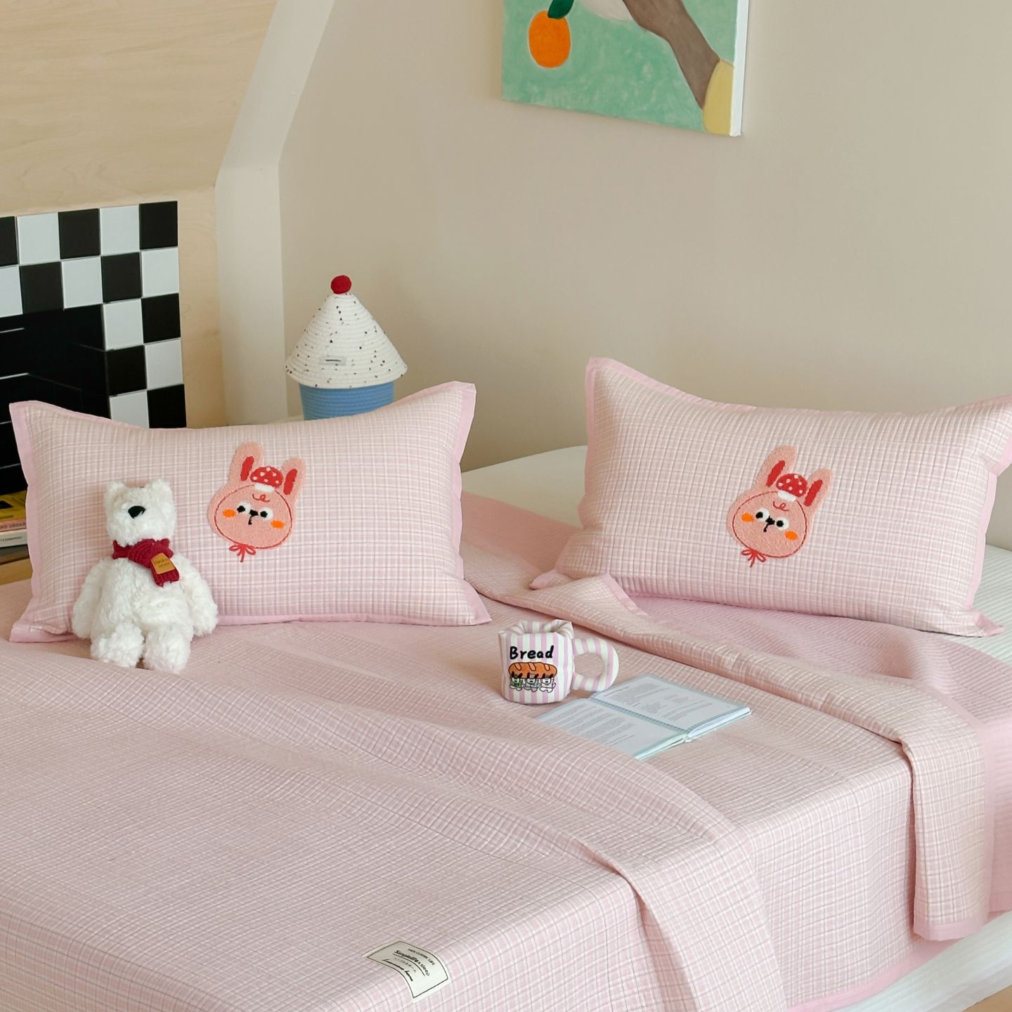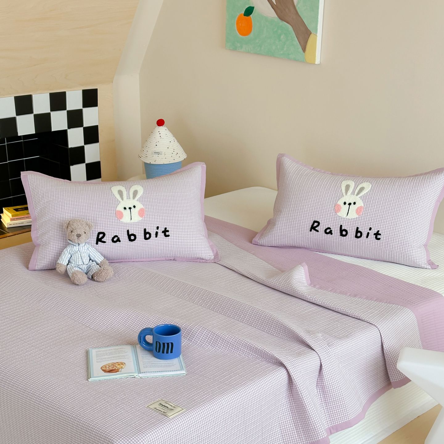 (总)觅糖家纺 2025新款色织水洗提花小波点贴布系列四件套,sweet兔,滑板小狮子,可爱松鼠,奶油比熊,小熊的故事,小羊驼