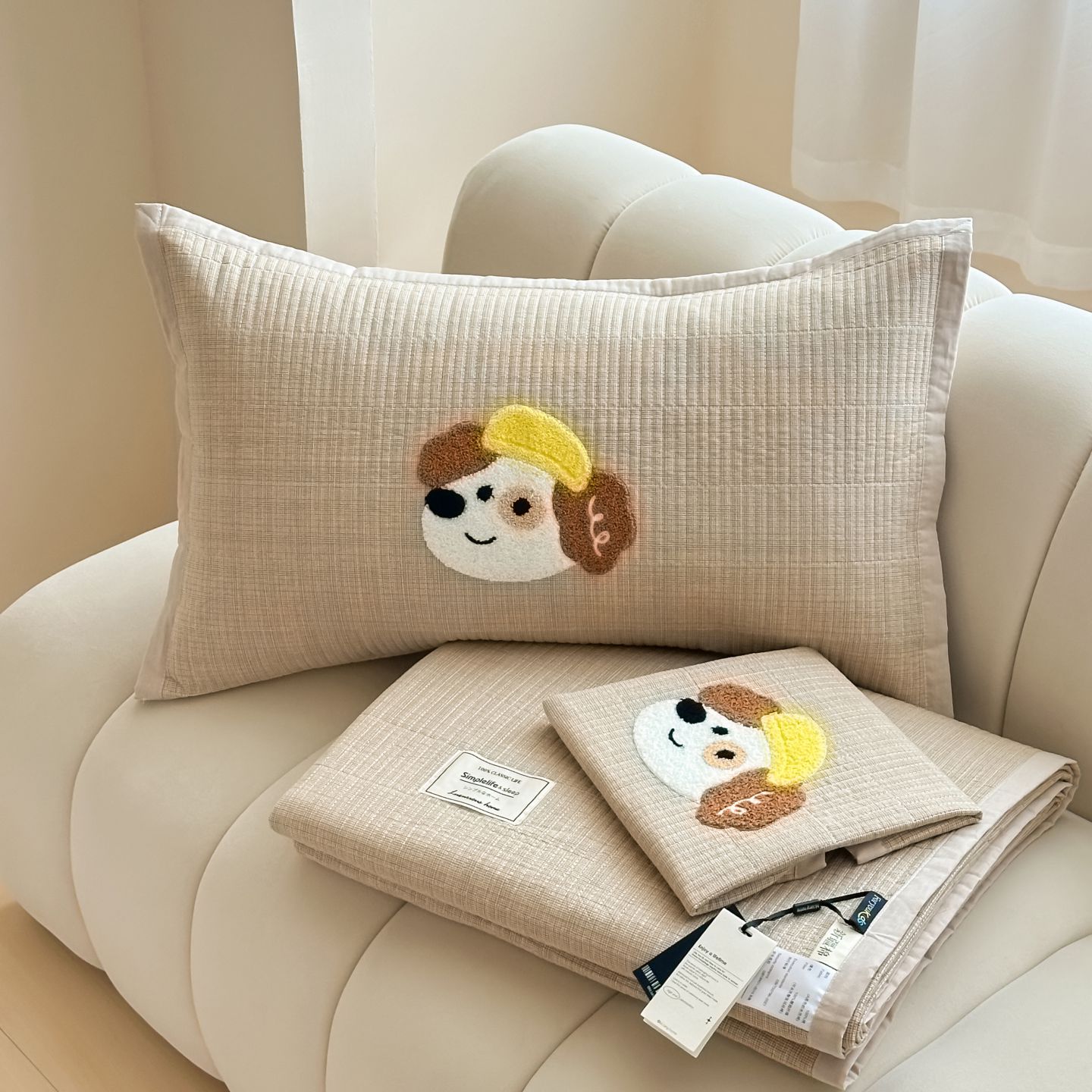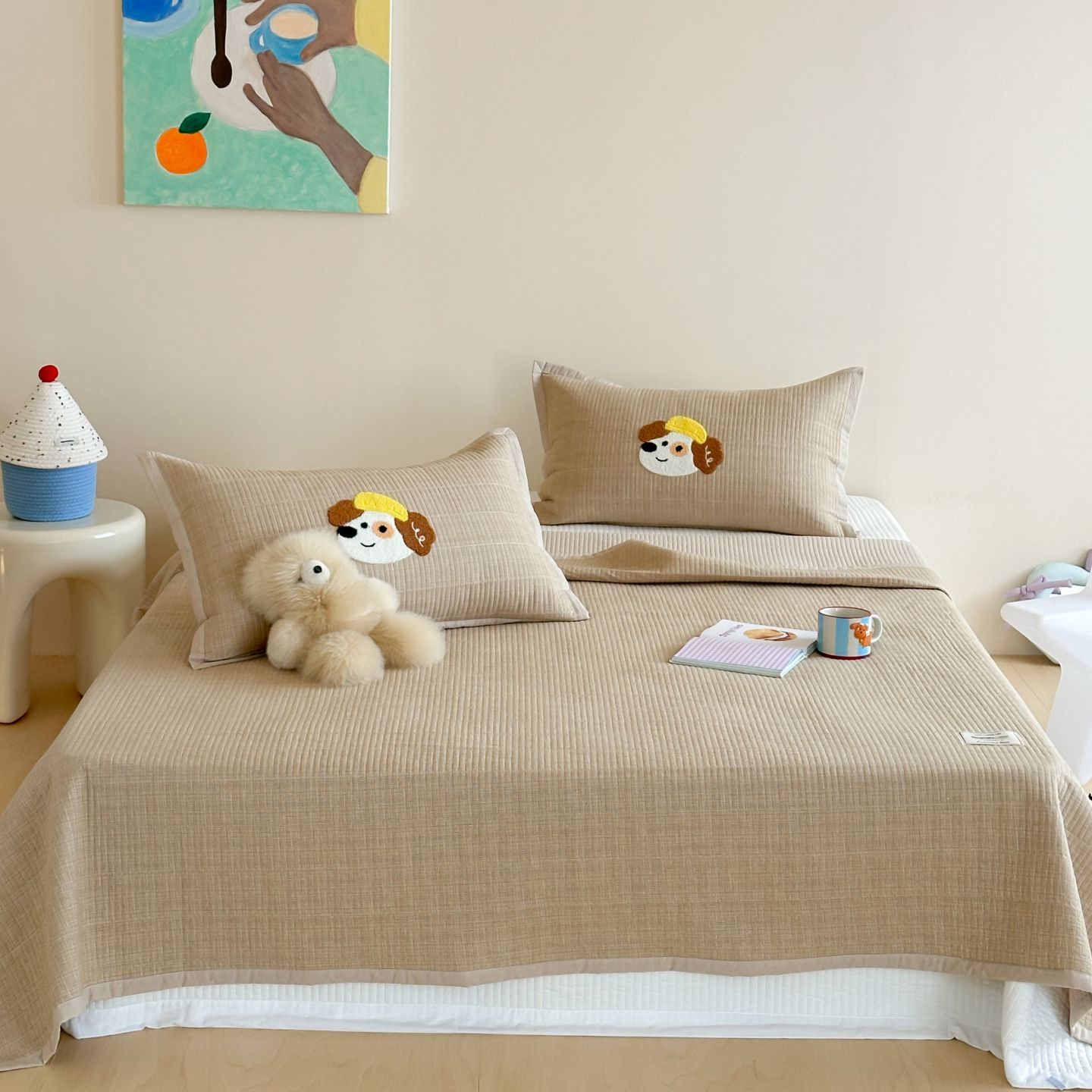 觅糖家纺 2025新款色织水洗棉毛巾绣床盖四件套 咖色狗狗