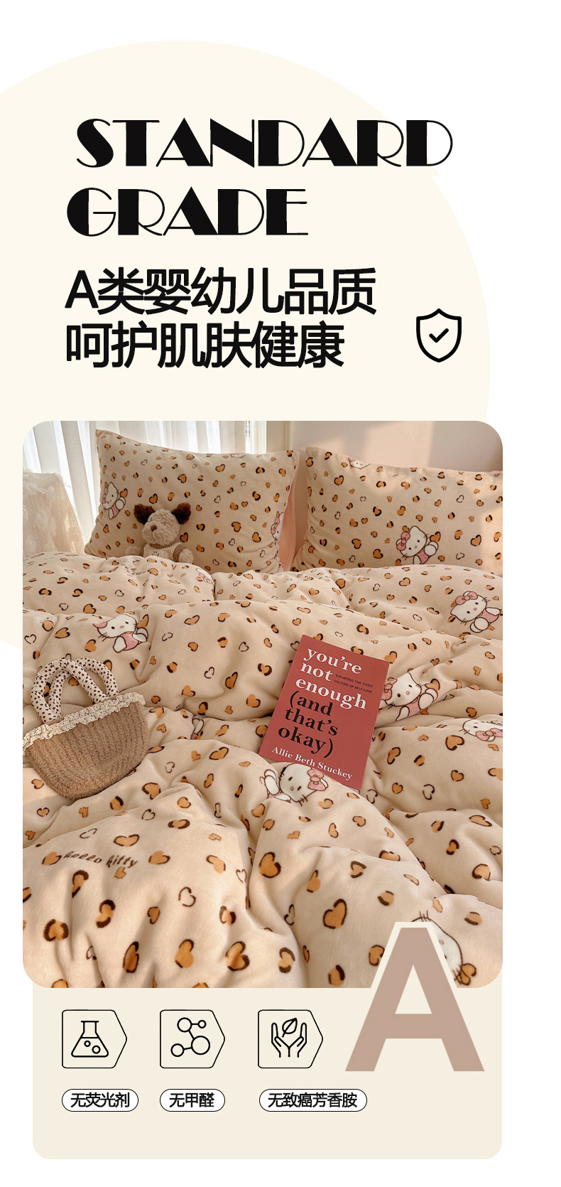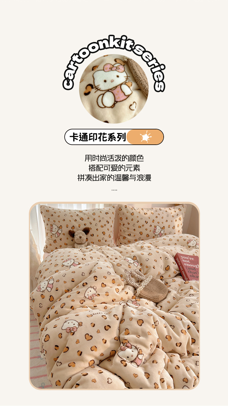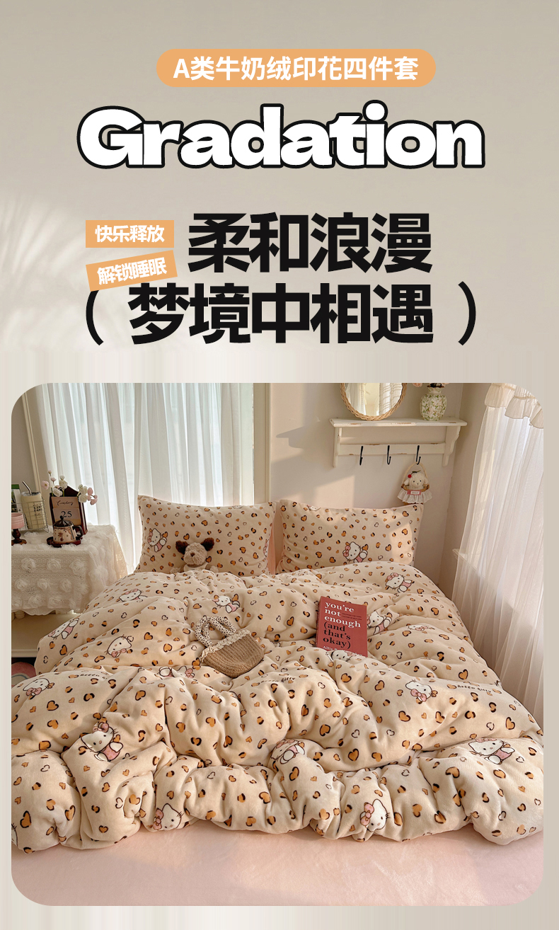 当前位置: 91家纺网 > 商品网购 > 床品套件 > 四件套 > 牛奶绒四件套 > 耀达家居 爆款2025新款ins小清新少女奶油卡通可爱加厚200克牛奶绒四件套 豹纹凯蒂