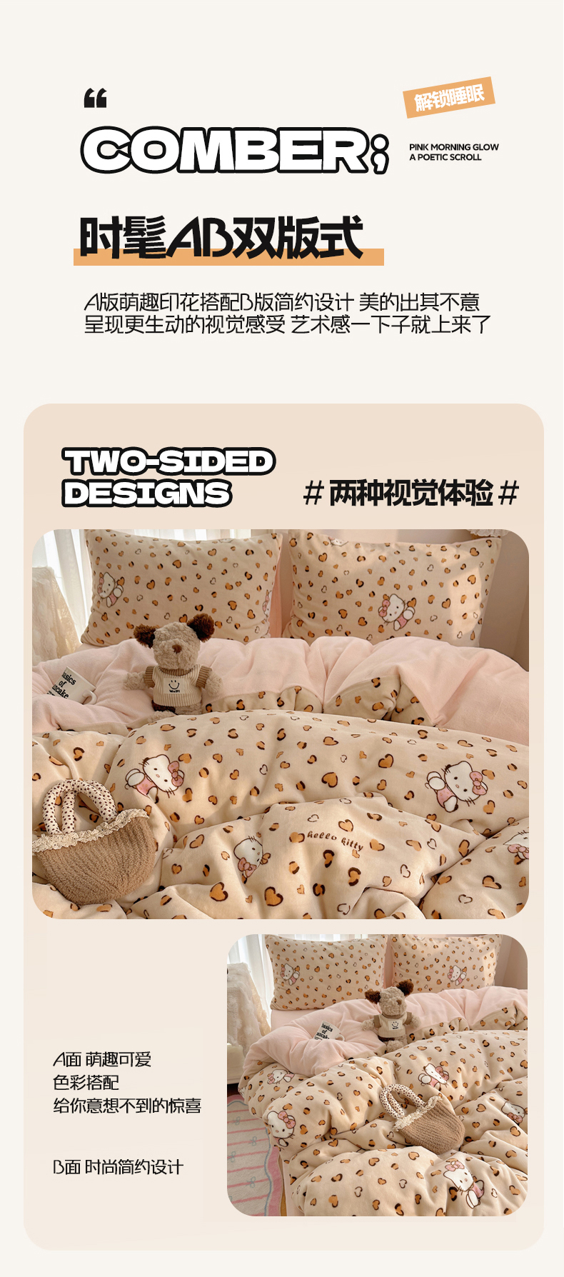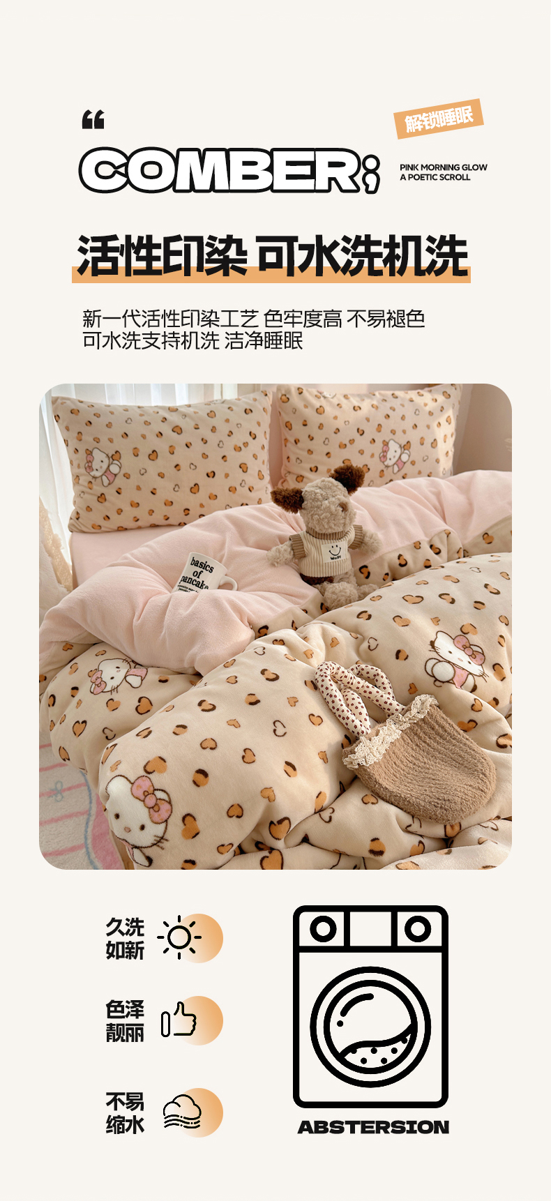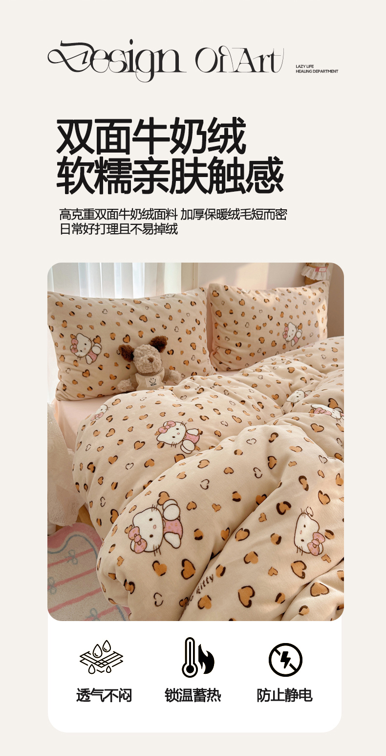 当前位置: 91家纺网 > 商品网购 > 床品套件 > 四件套 > 牛奶绒四件套 > 耀达家居 爆款2025新款ins小清新少女奶油卡通可爱加厚200克牛奶绒四件套 豹纹凯蒂