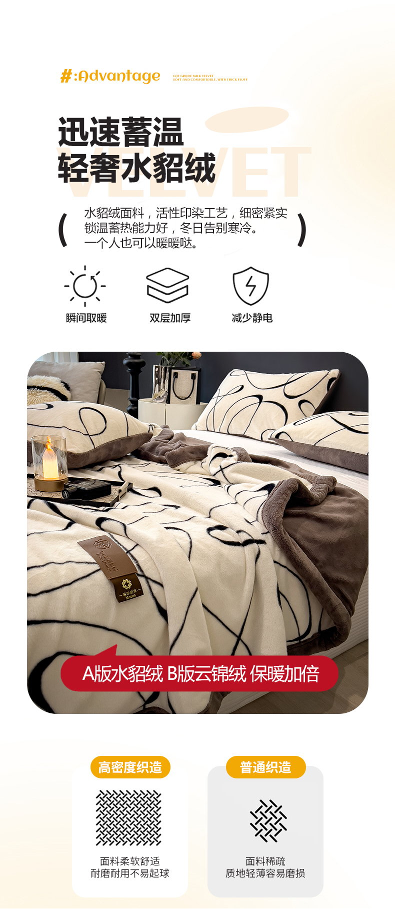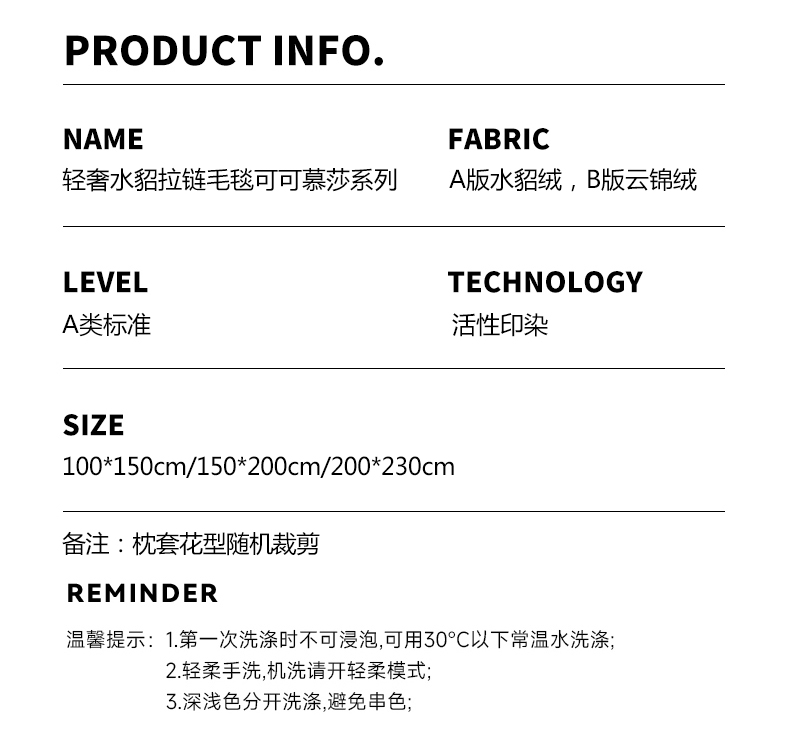 商品名称:慕木家纺 2025新款轻奢水貂拉链毛毯可可慕莎系列 可可慕莎-交织白