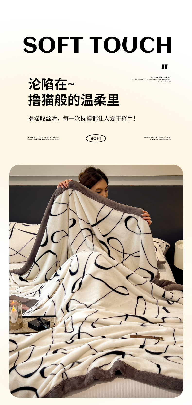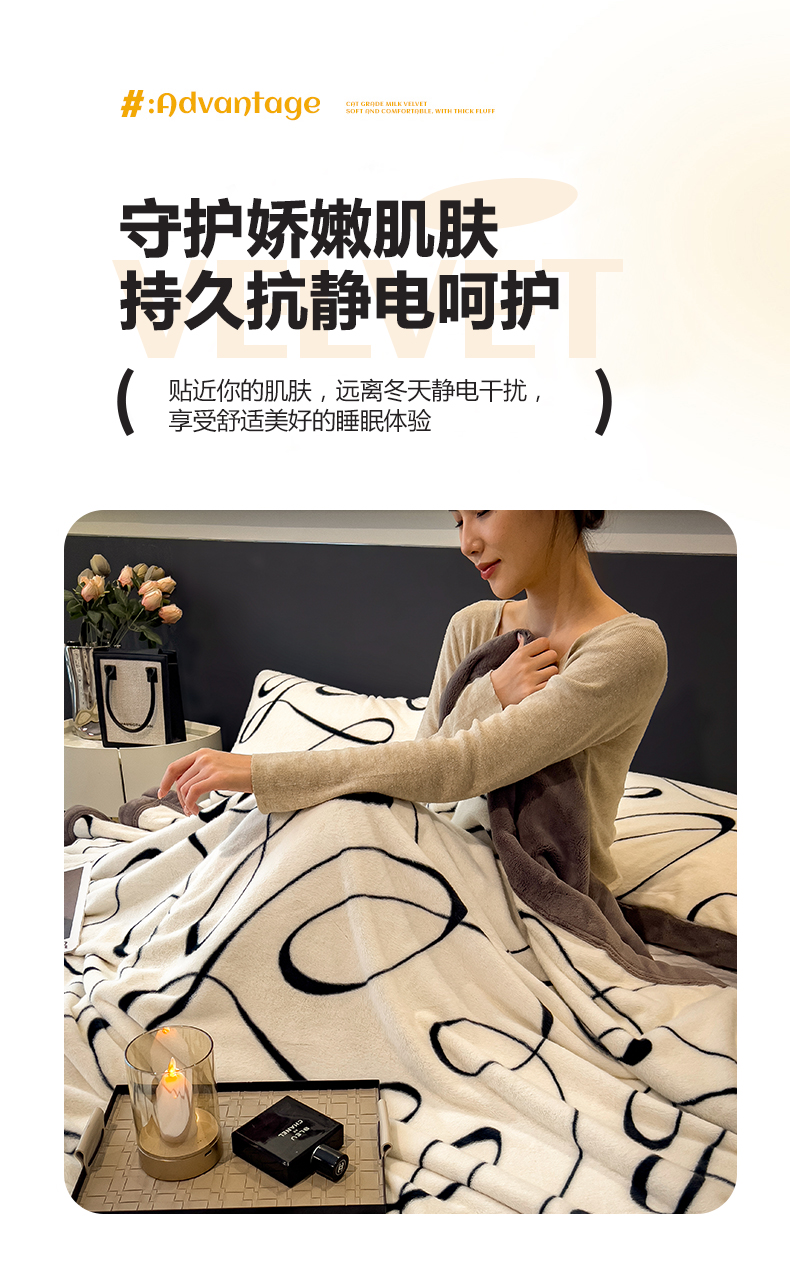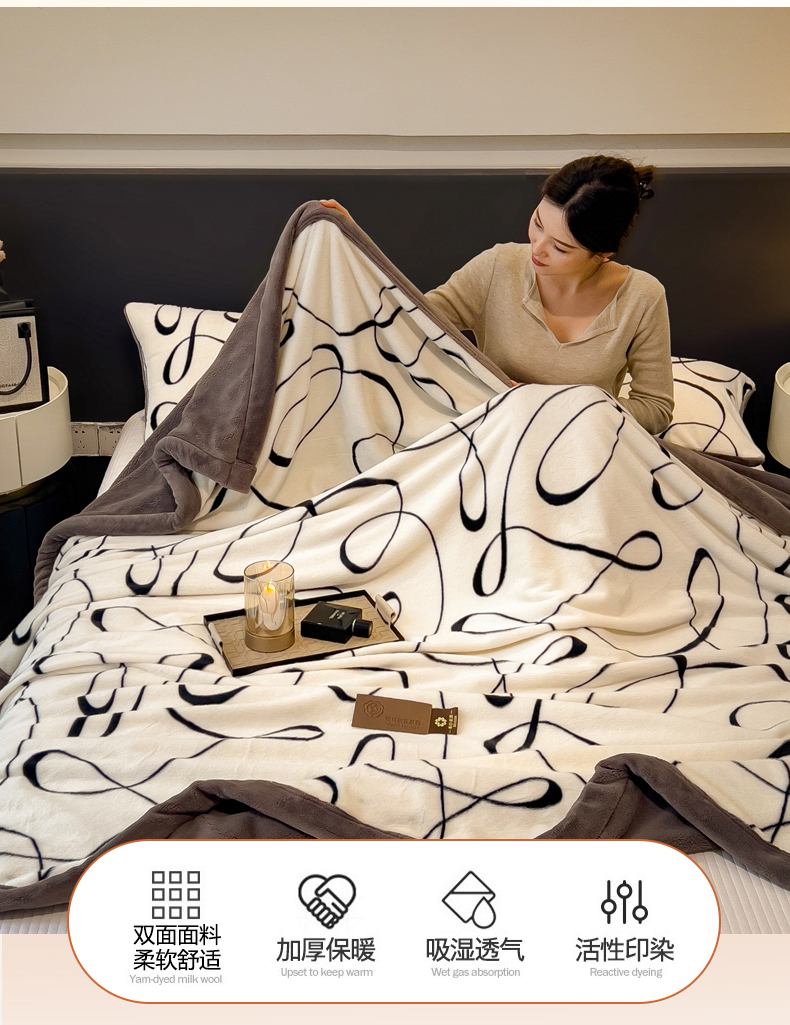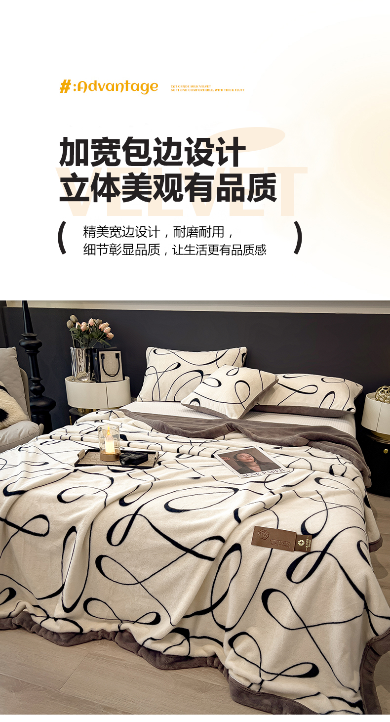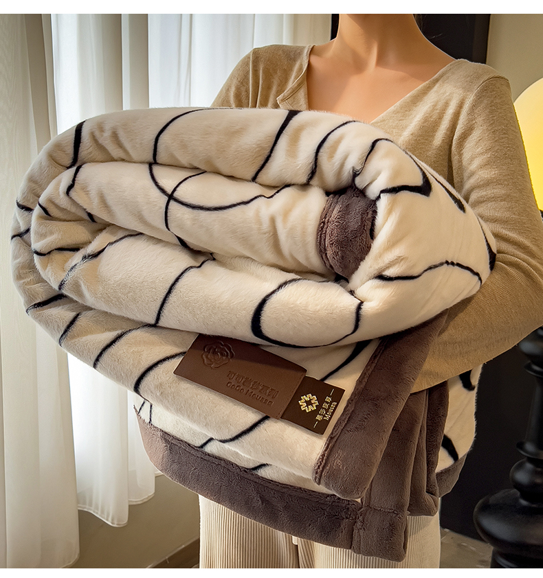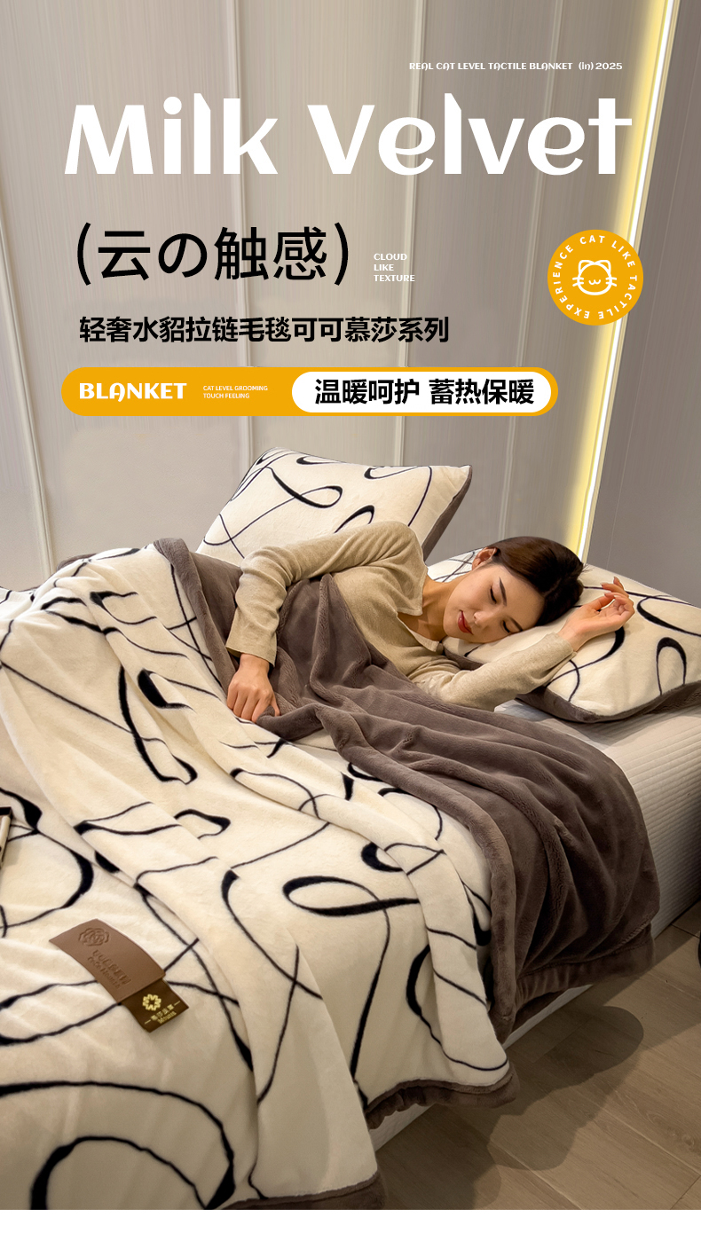 慕木家纺 2025新款轻奢水貂拉链毛毯可可慕莎系列 可可慕莎-交织白