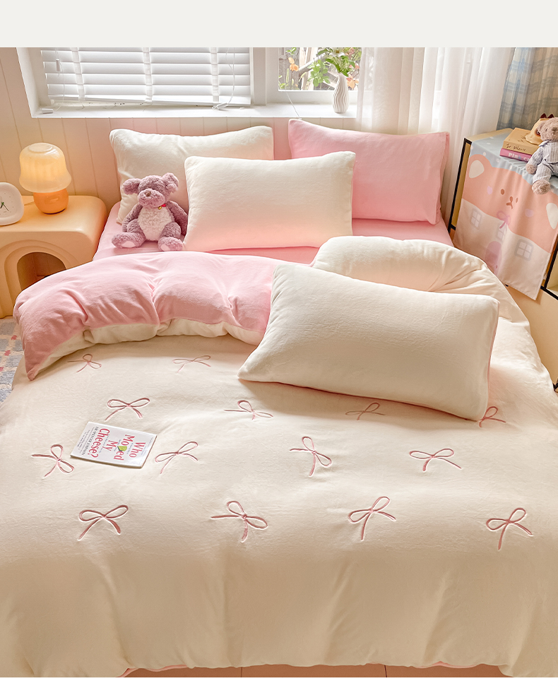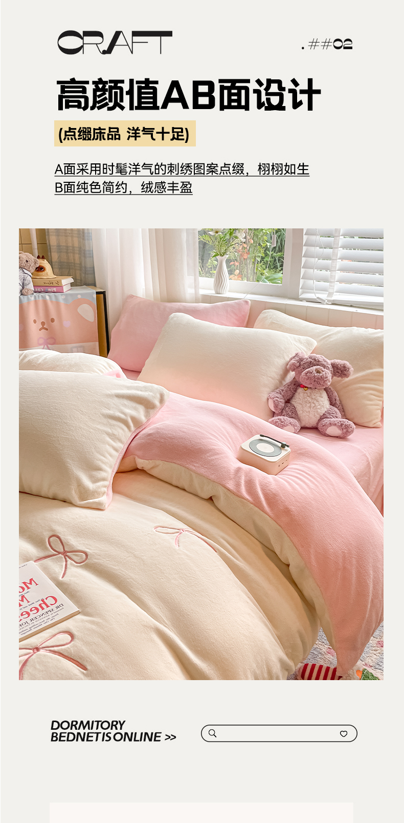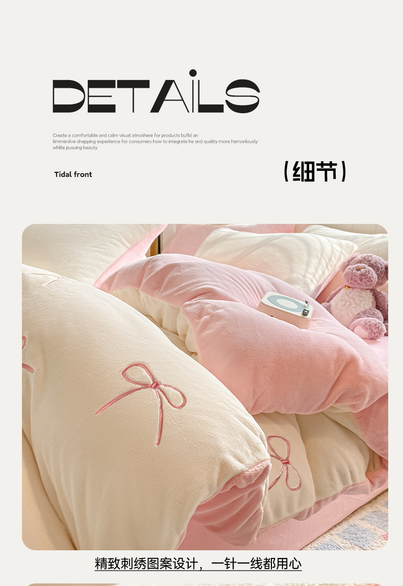 商品名称:仔仔熊 2025新款牛奶绒刺绣被套单被套被套单件 奶糖蝴蝶结-粉