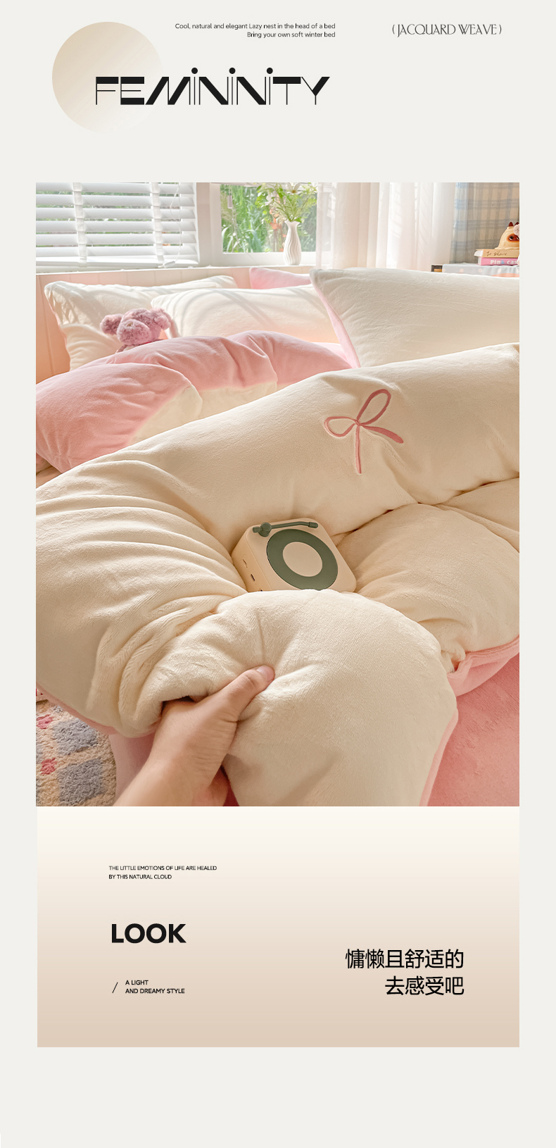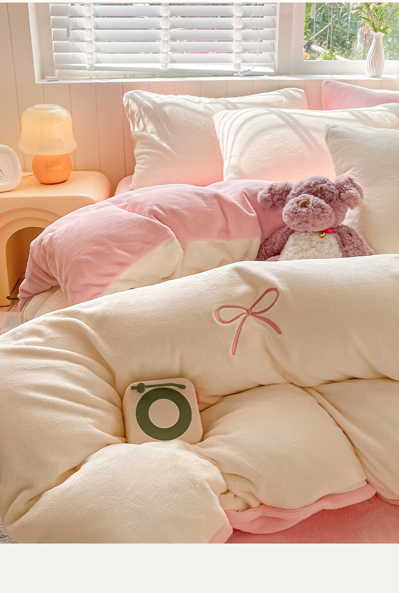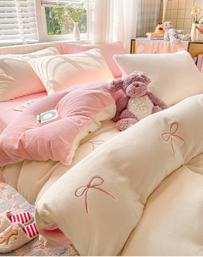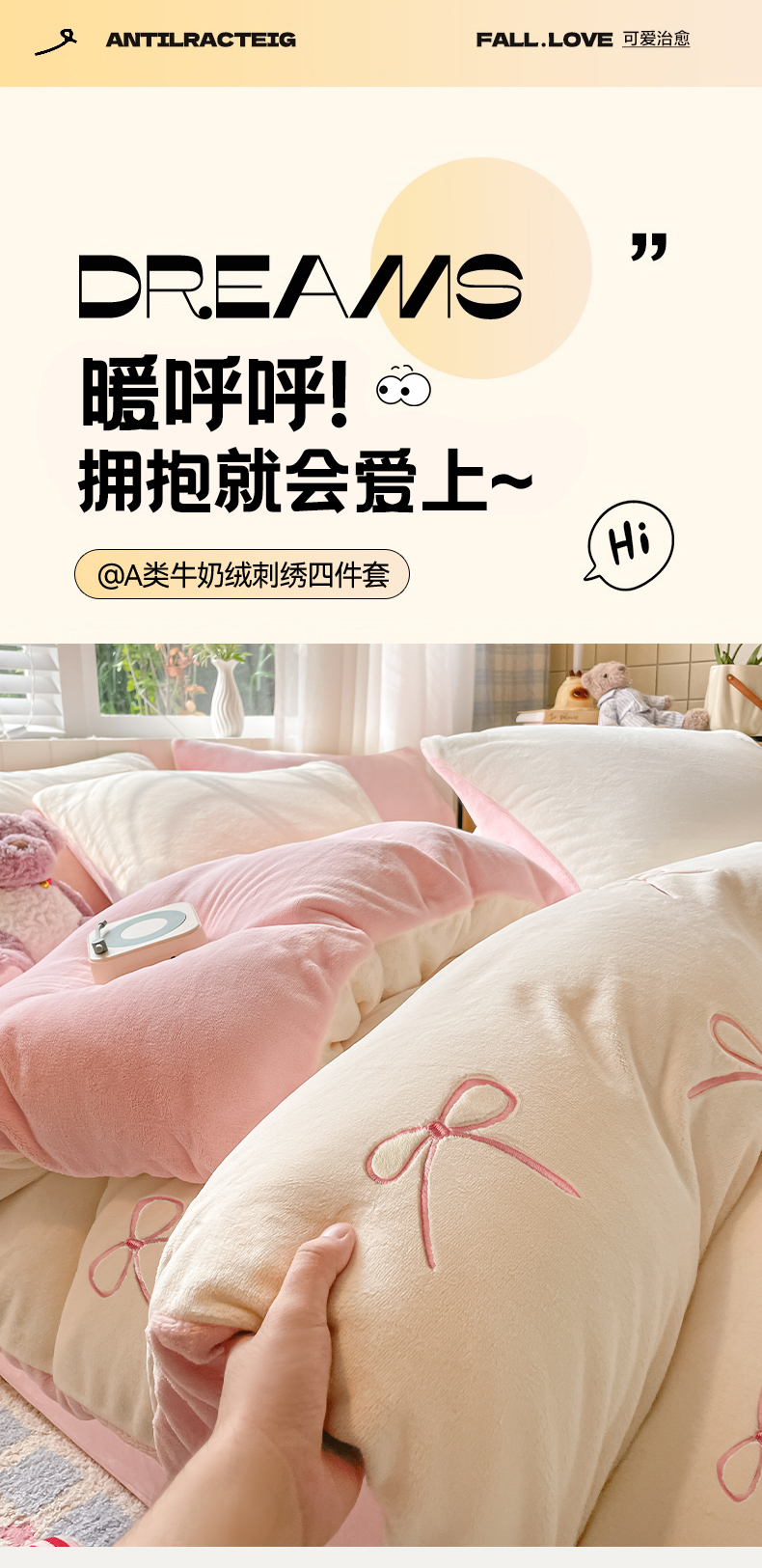 商品名称:仔仔熊 2025新款牛奶绒刺绣被套单被套被套单件 奶糖蝴蝶结-粉