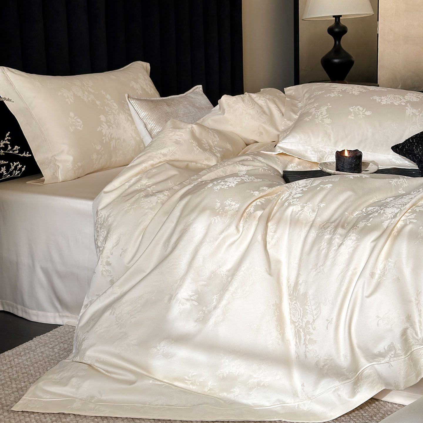 商品名称:MIU缪家居 2025新款100支全棉厚织提花简奢系列四件套-暮歌 暮歌 (米白)