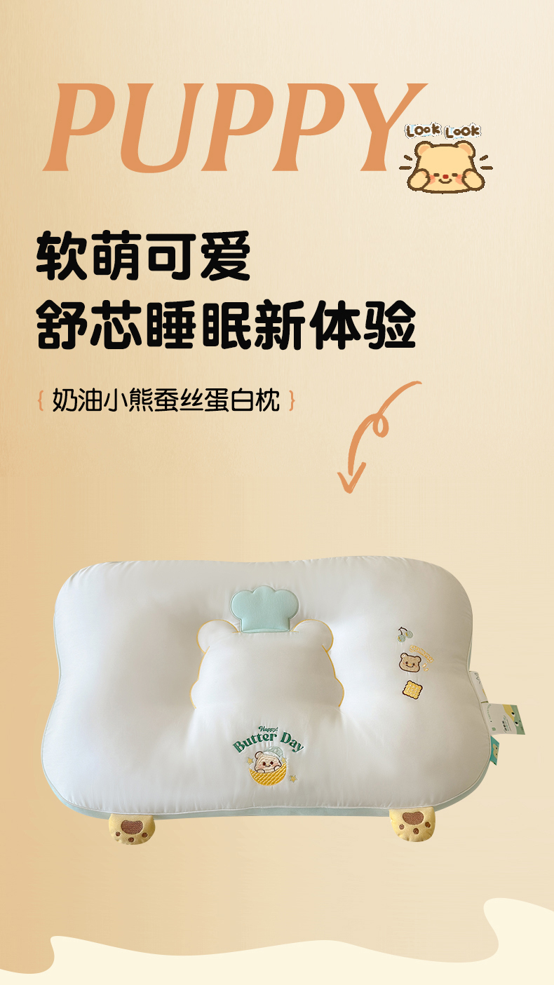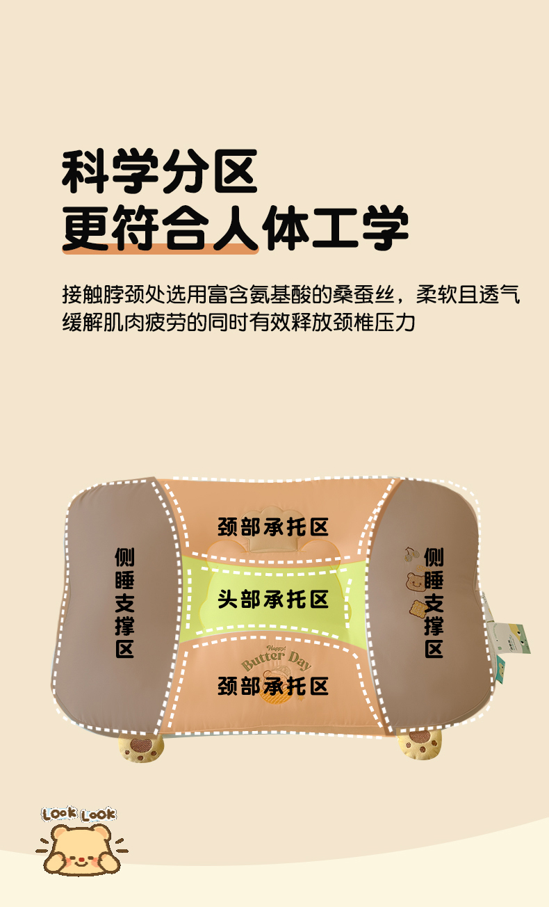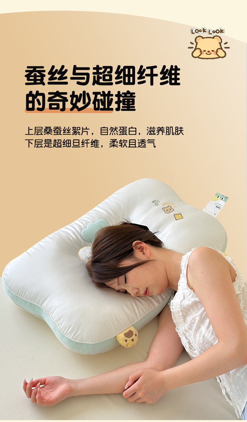 商品名称:(总)北鸣有鱼枕芯馆 2025新款蚕丝纤维复合枕枕头枕芯-奶油小熊