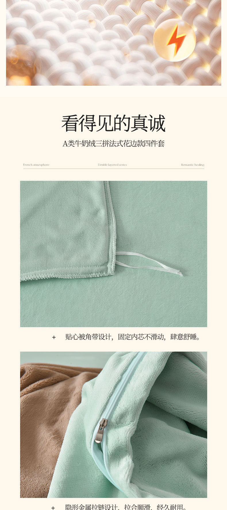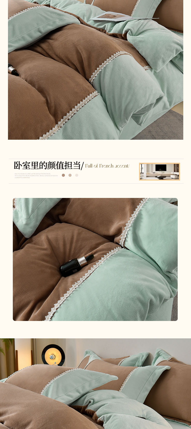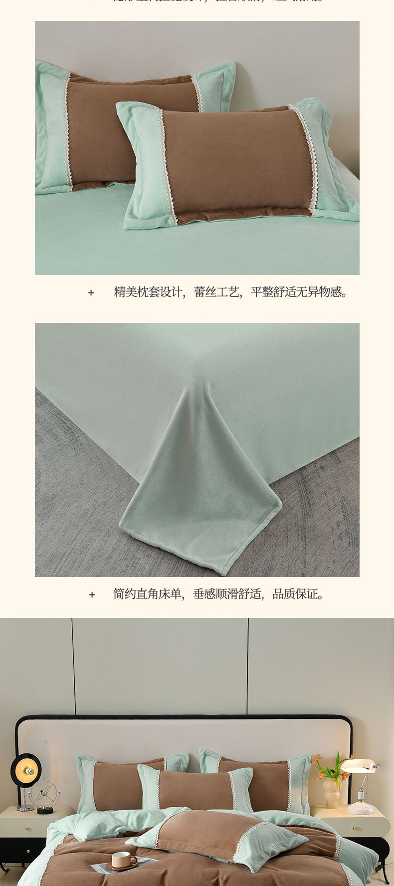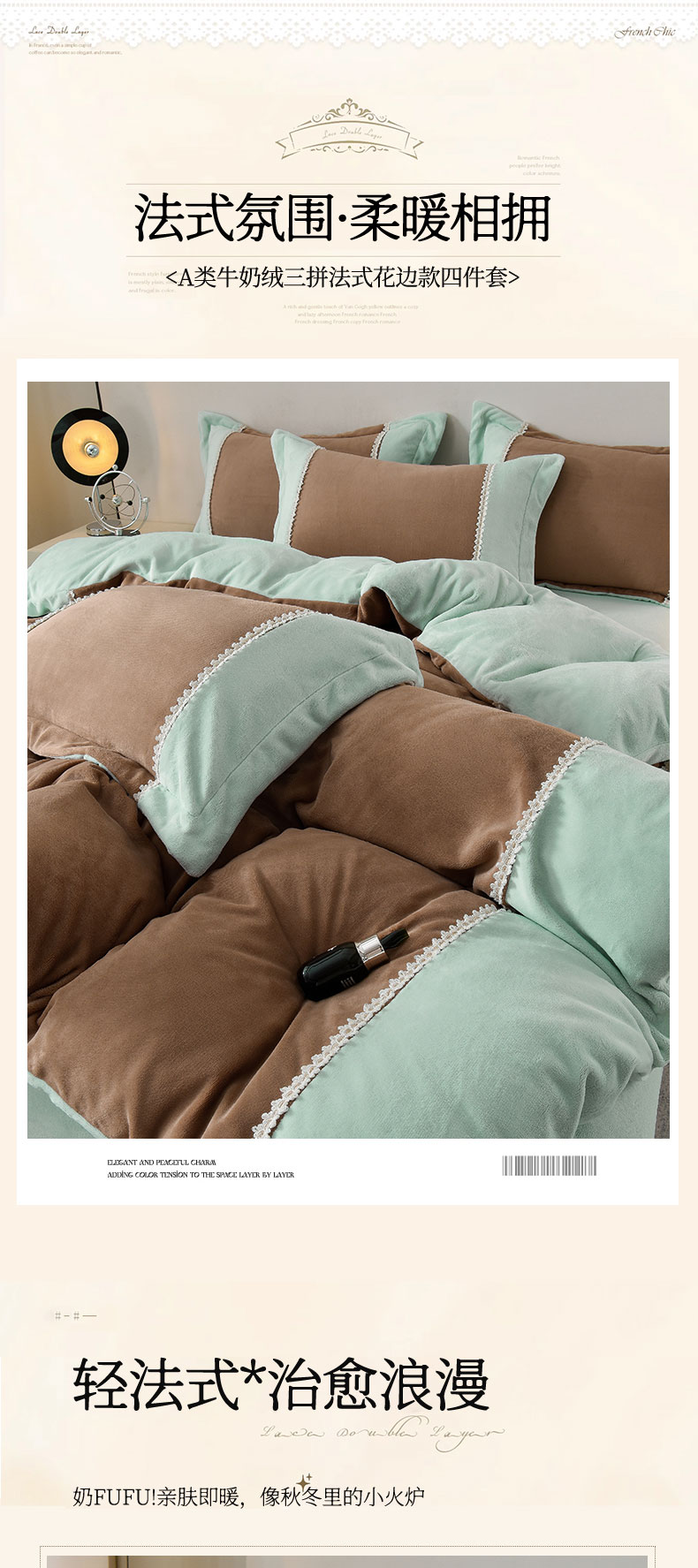 当前位置: 91家纺网 > 商品网购 > 床品套件 > 四件套 > 牛奶绒四件套 > 眷恋家纺 2025新款A类牛奶绒三拼法式花边款四件套-蒂凡妮 蒂凡妮-摩卡绿
