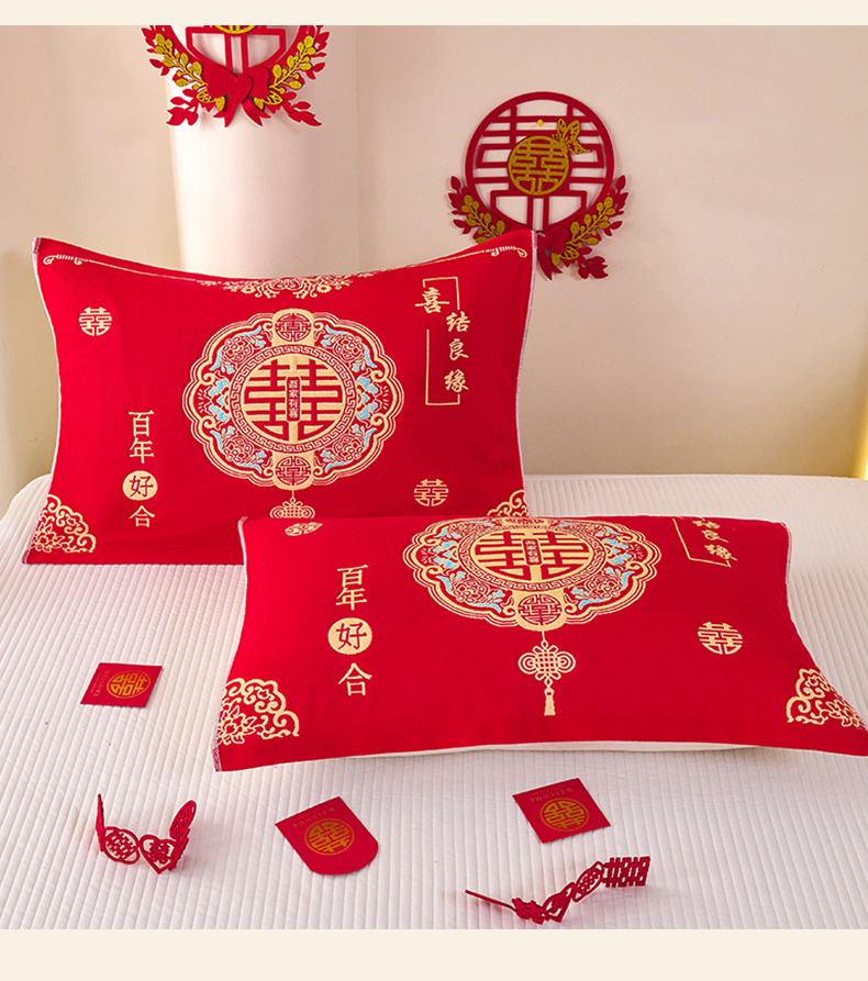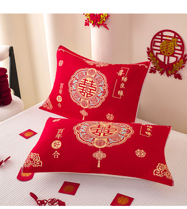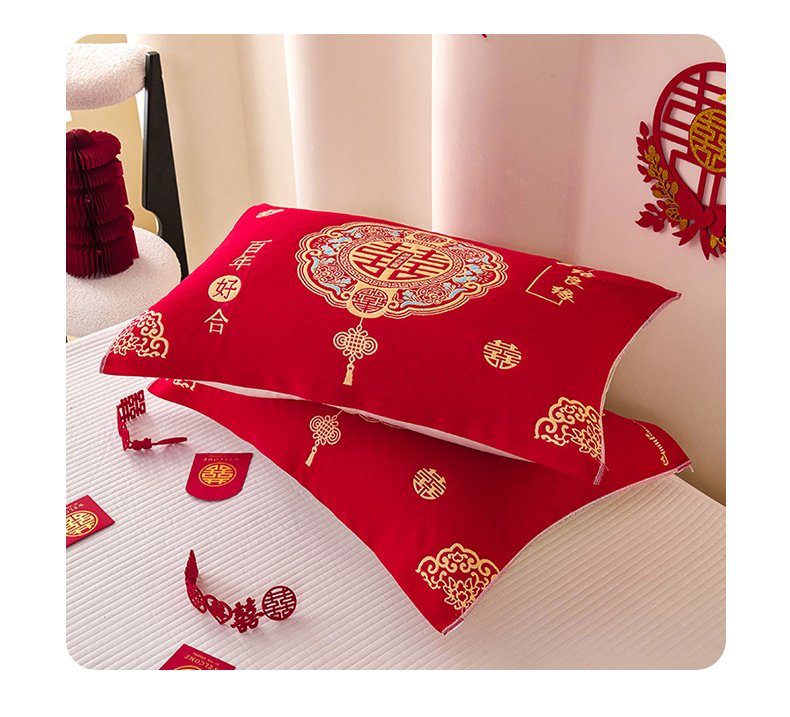 悦然毛巾被 2025新款全棉三层纱大红枕巾 纳福