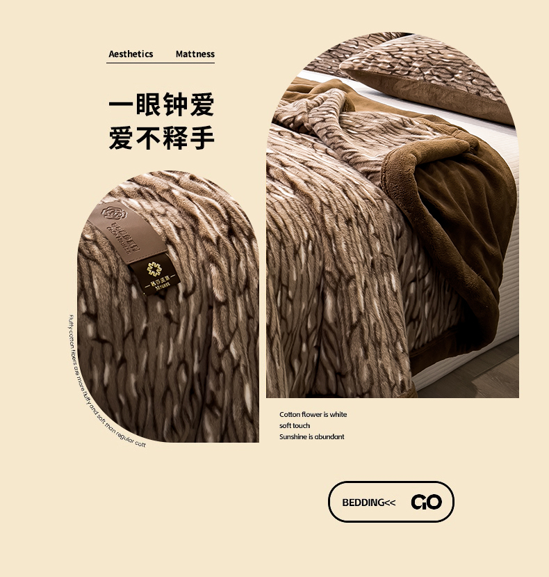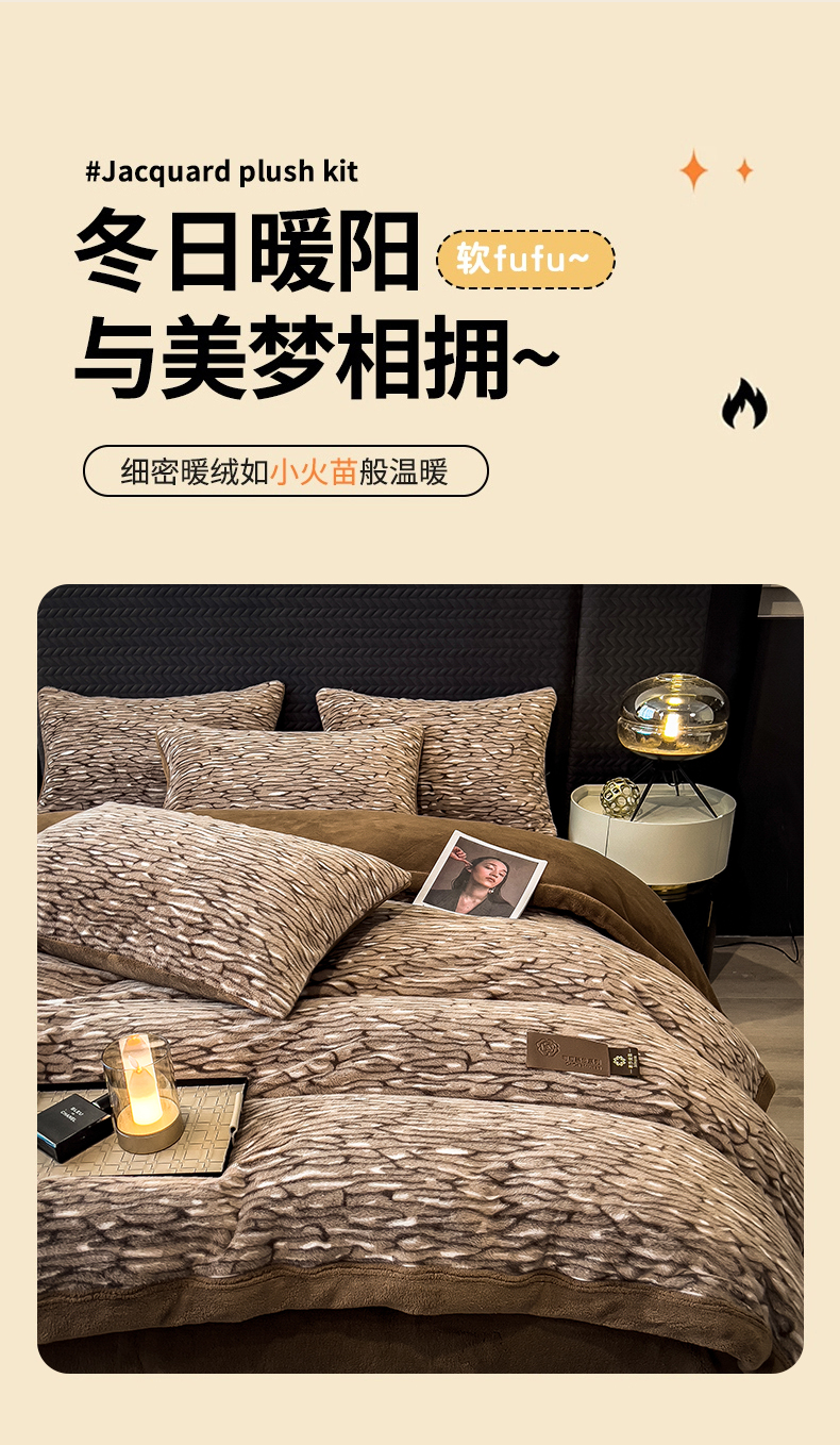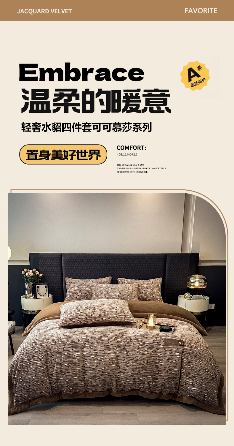 商品名称:叠派家纺 2025新款A类轻奢款高克重高端水貂四件套可可慕莎系列(直播热款)提供买家秀 可可慕莎-绮罗金棕