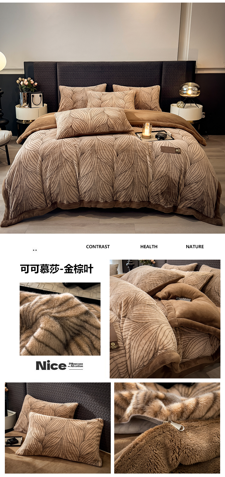 (总)叠派家纺 2025新款A类轻奢款高克重高端水貂四件套可可慕莎系列(直播热款)提供买家秀,可可慕莎-金棕叶,可可慕莎-交织白,可可慕莎-魅影蓝灰,可可慕莎-魅影棕咖,可可慕莎-绮罗金棕,可可慕莎-绮罗蓝灰