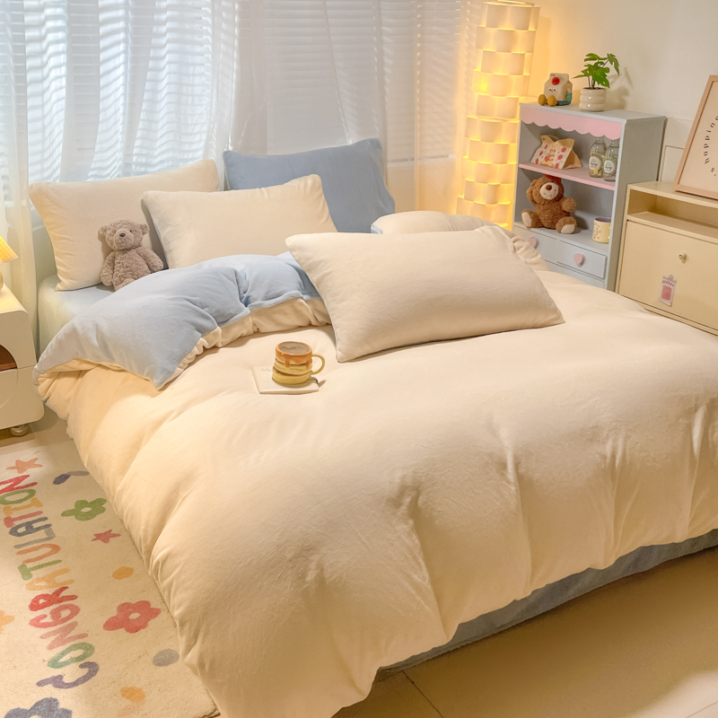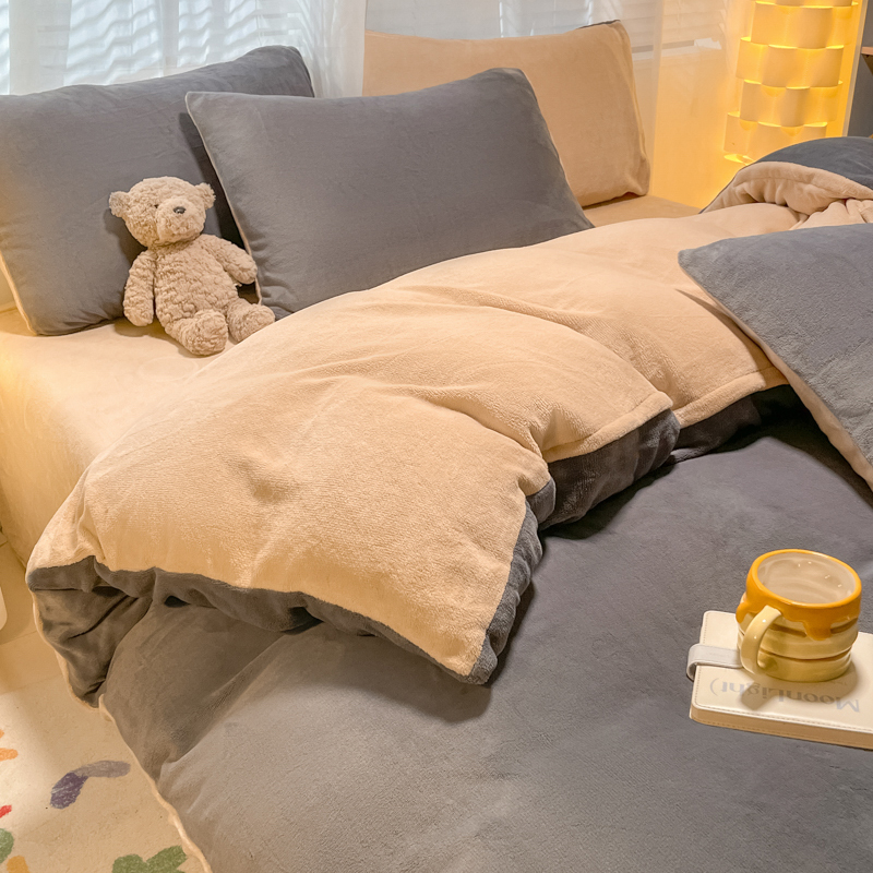 当前位置: 91家纺网 > 商品网购 > 床品套件 > 四件套 > 牛奶绒四件套 > 仔仔熊 2025新款牛奶绒纯色双拼四件套 粉色+灰色