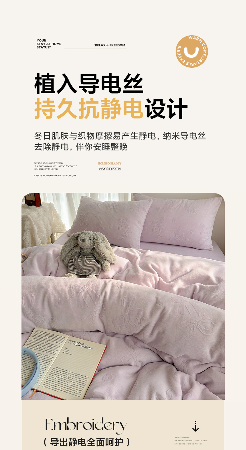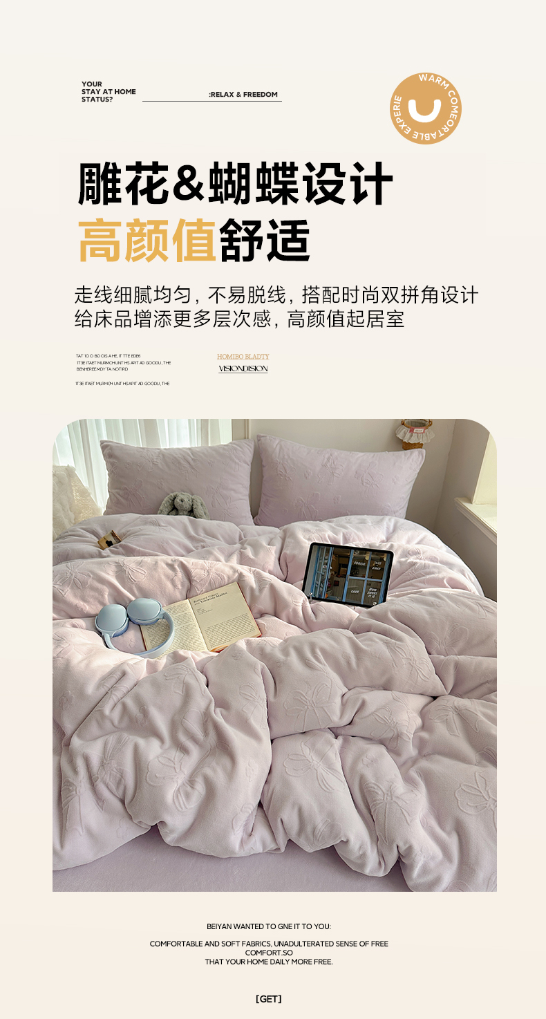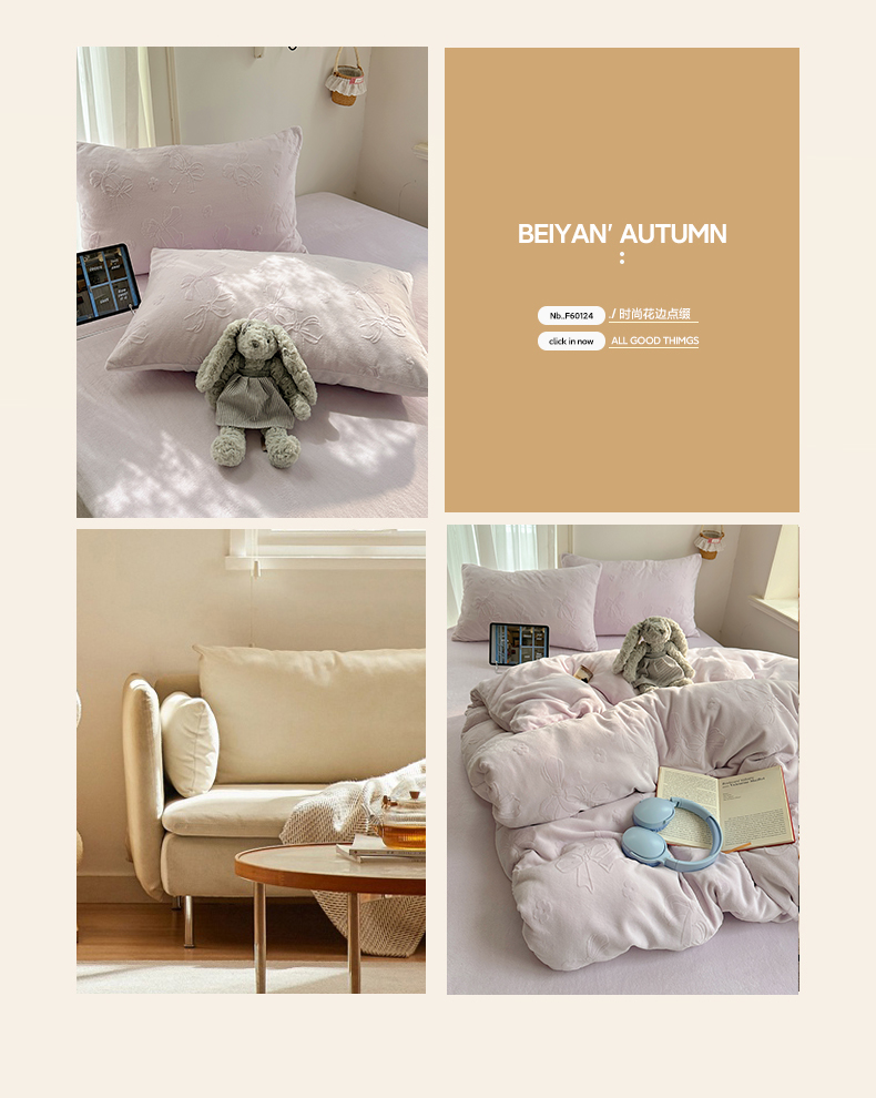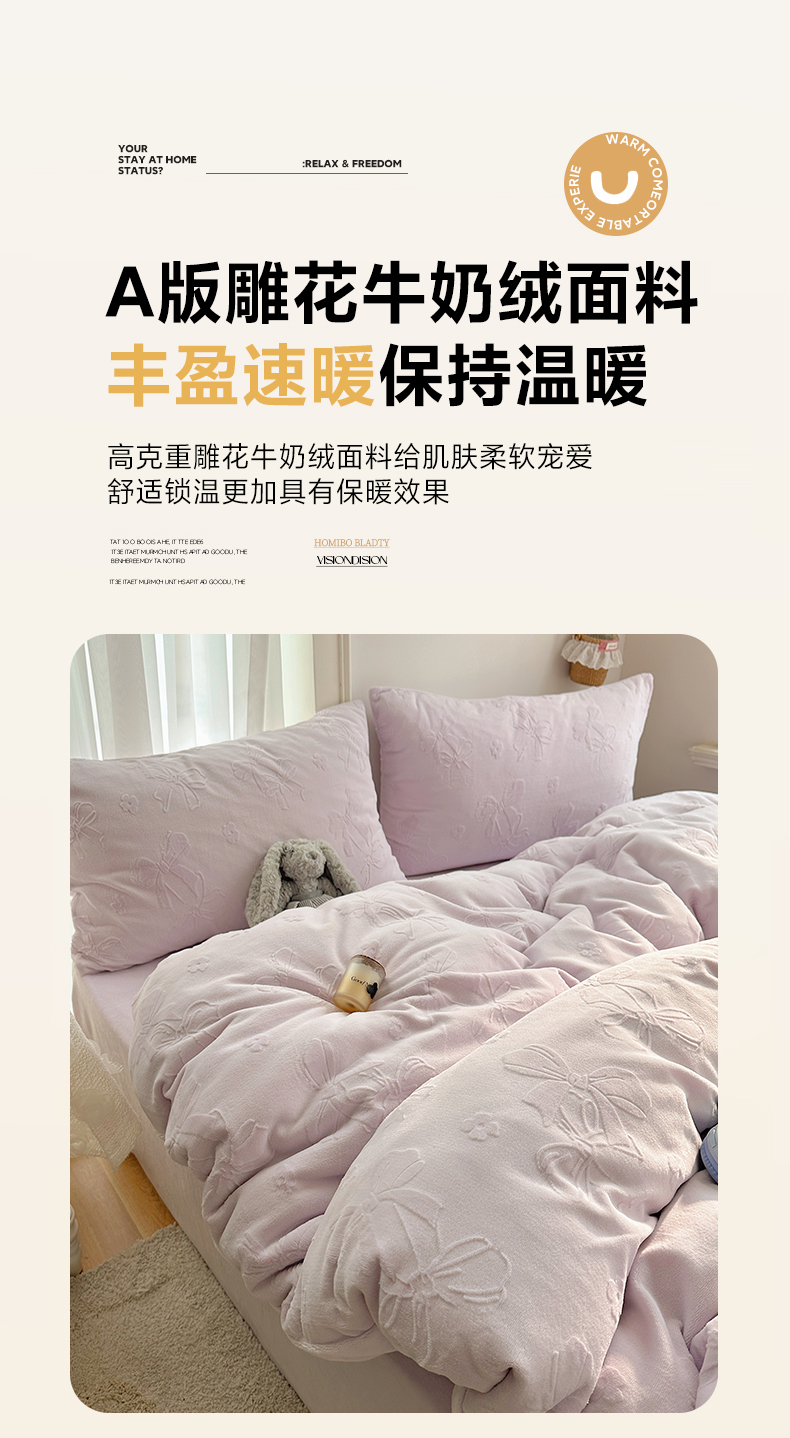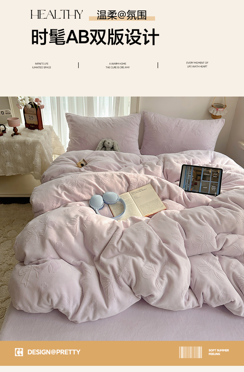 (总)瑞钰 2025新款ins博士风蝴蝶全消光雕花暗合牛奶绒四件套,蝴蝶结-米白,蝴蝶结-浅粉,蝴蝶结-浅蓝,蝴蝶结-浅紫