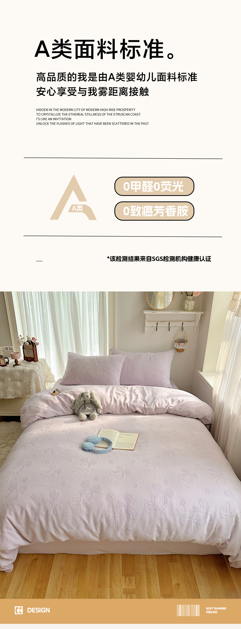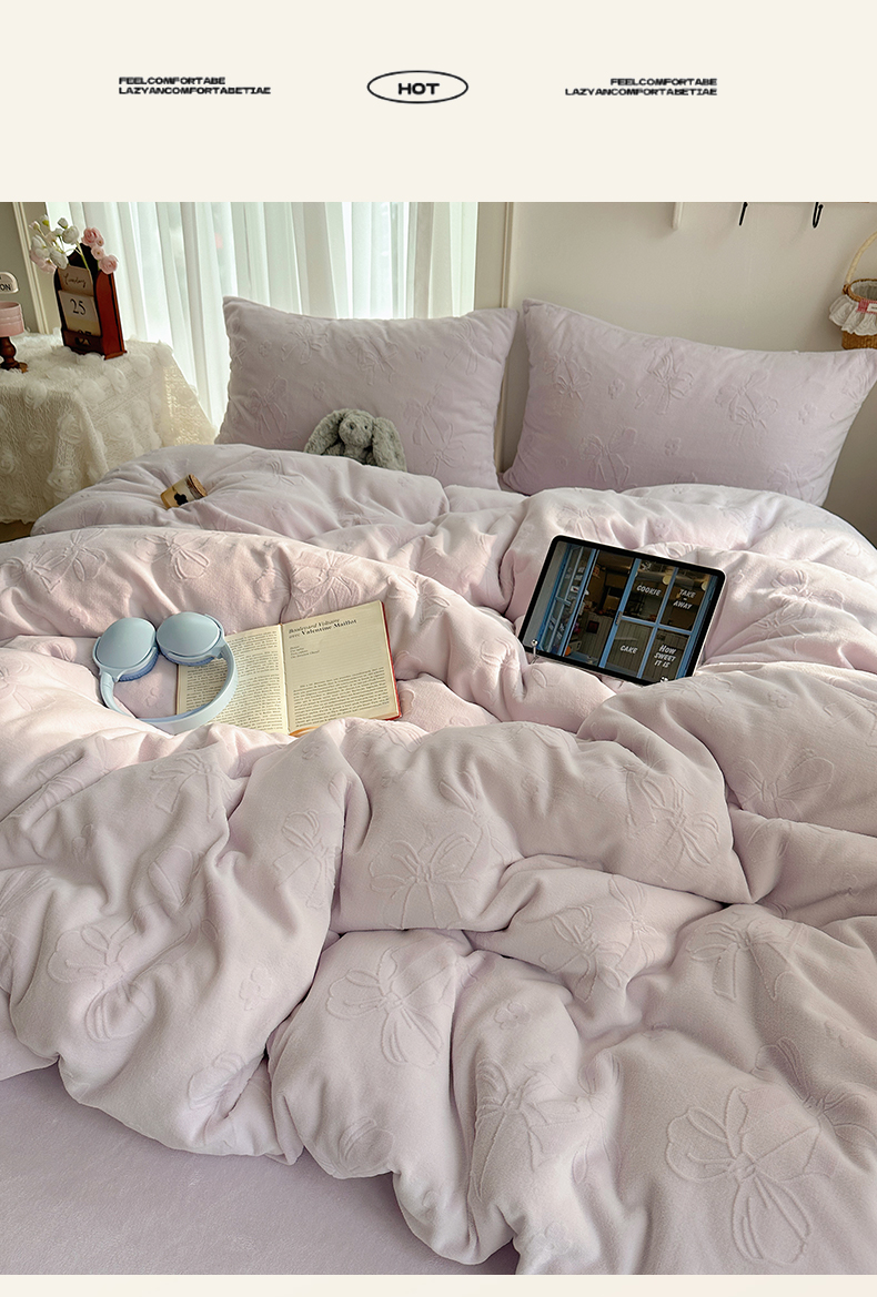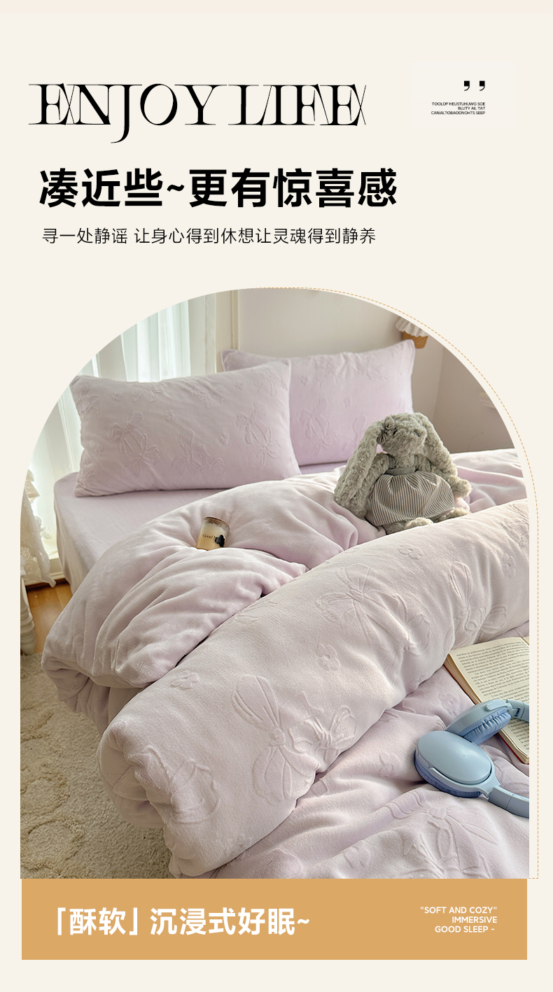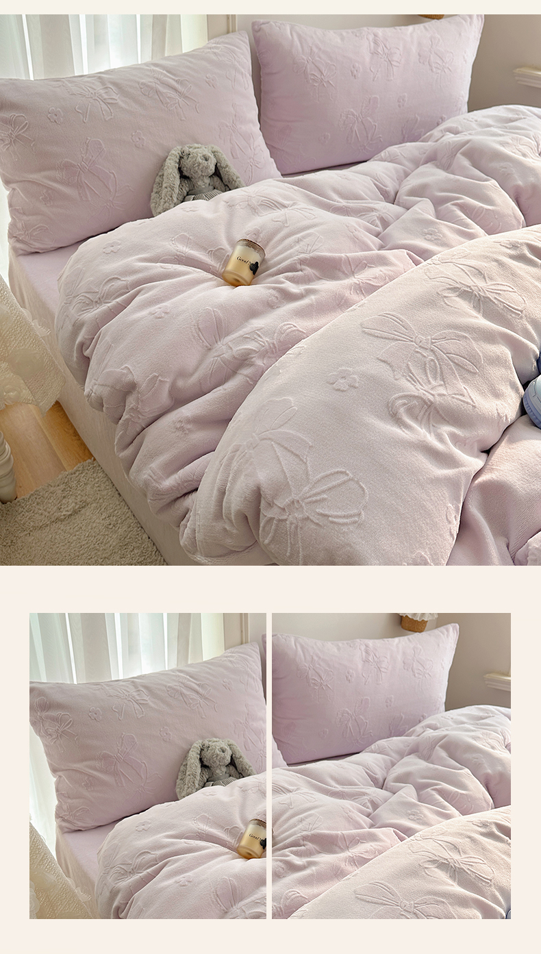 商品名称:瑞钰 2025新款ins博士风蝴蝶全消光雕花暗合牛奶绒四件套 蝴蝶结-浅紫