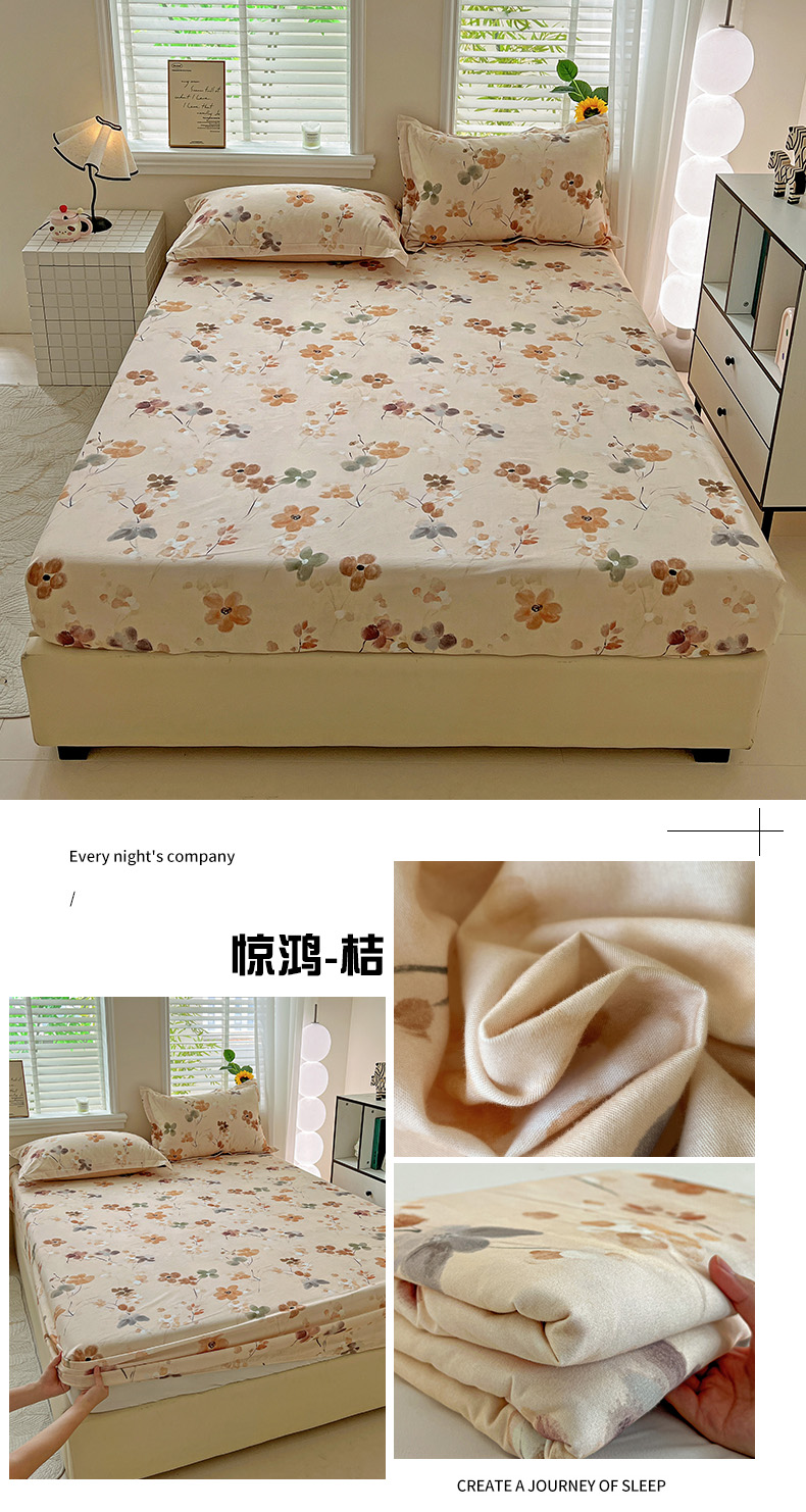 商品名称:依庭 2025新款高克重全棉纯棉磨毛印花床笠单品床笠 笙白-桔