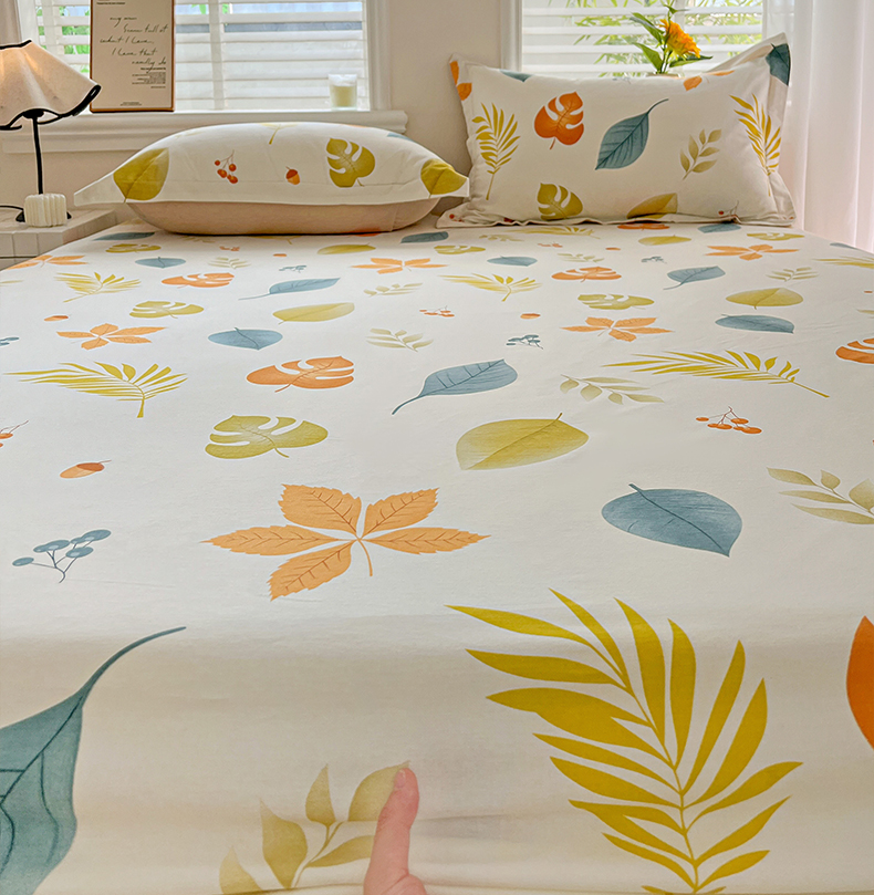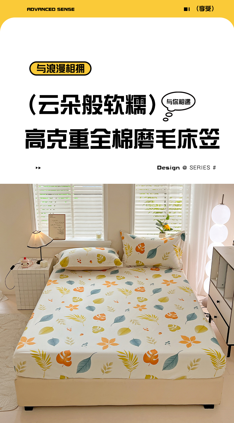 依庭 2025新款高克重全棉纯棉磨毛印花床笠单品床笠 叶之恋