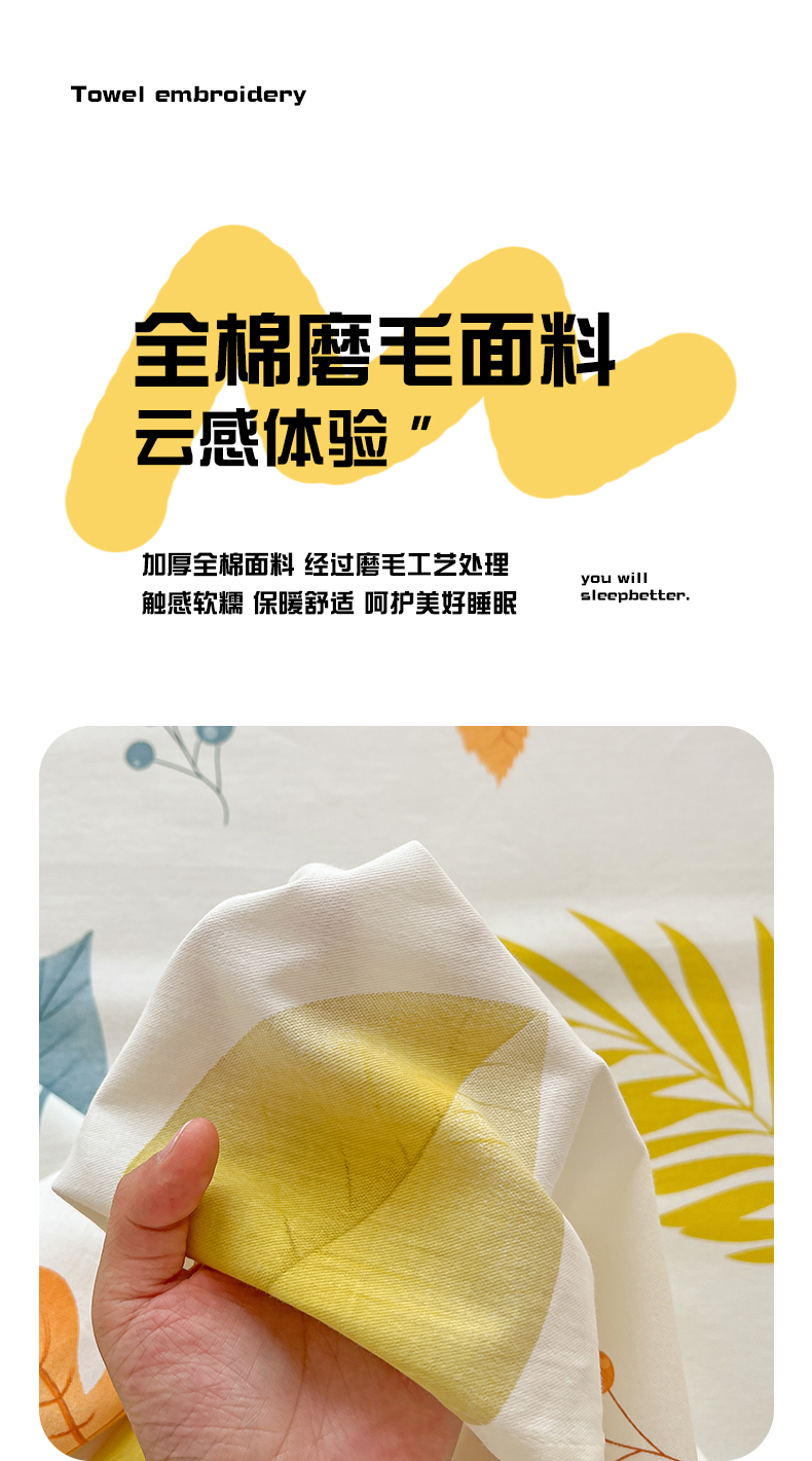 商品名称:依庭 2025新款高克重全棉纯棉磨毛印花床笠单品床笠 叶之恋