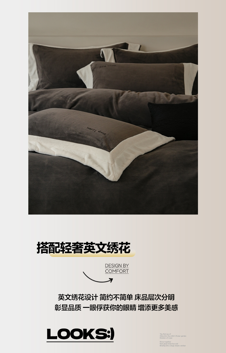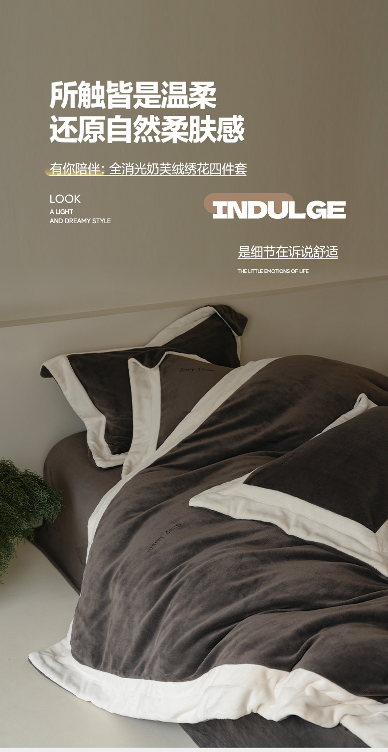 商品名称:简纯主义 2025新款270g全消光全工艺奶芙绒四件套-赫尔曼系列 【控价】:日常店铺券后价格:358/398 赫尔曼黑