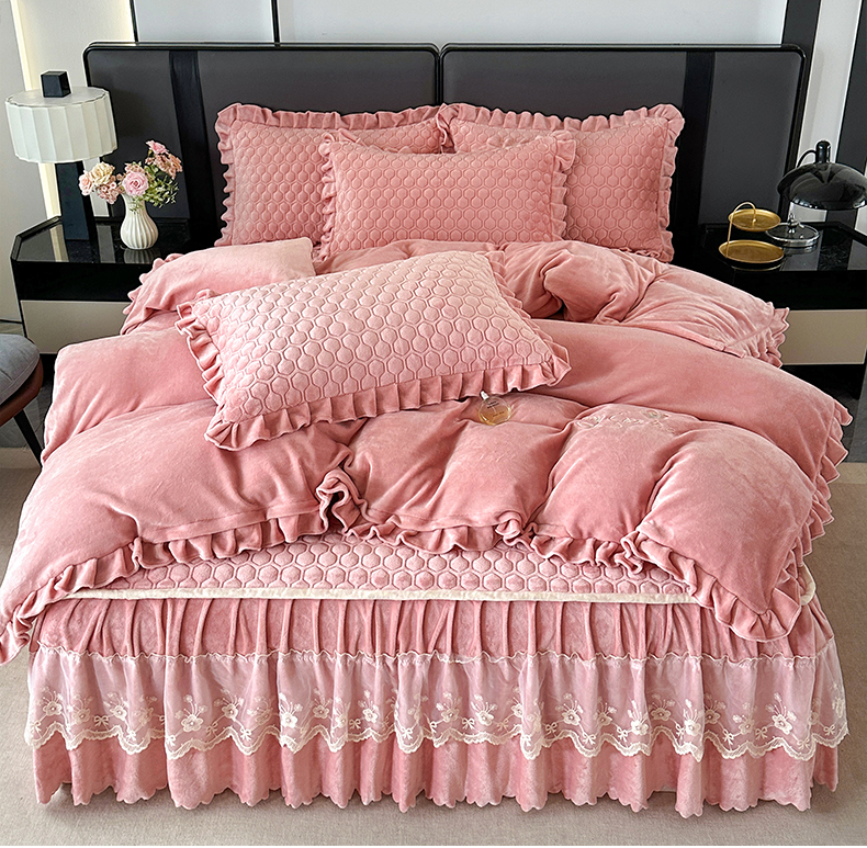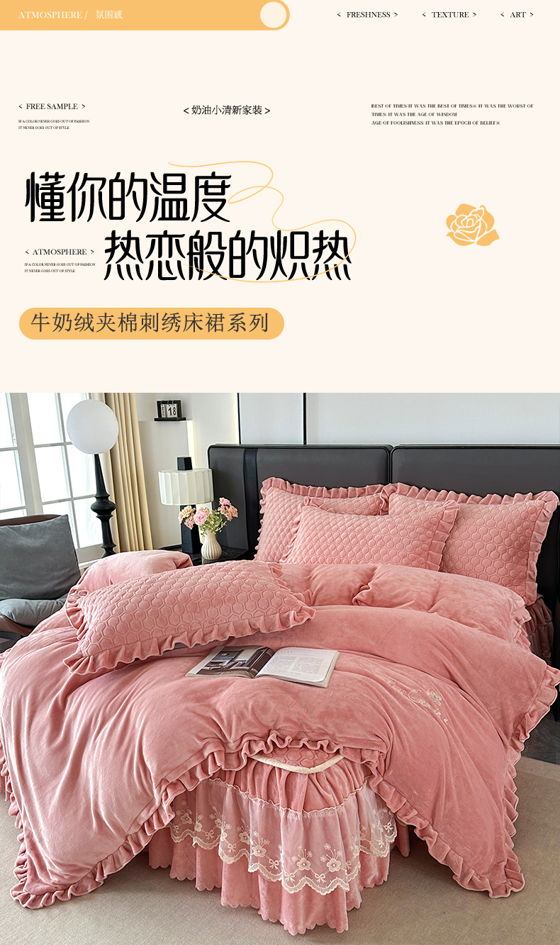 董韵家纺 2025新款牛奶绒刺绣夹棉床裙四件套系列(控价) 丝语-浅豆沙