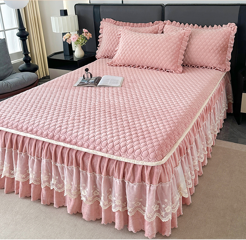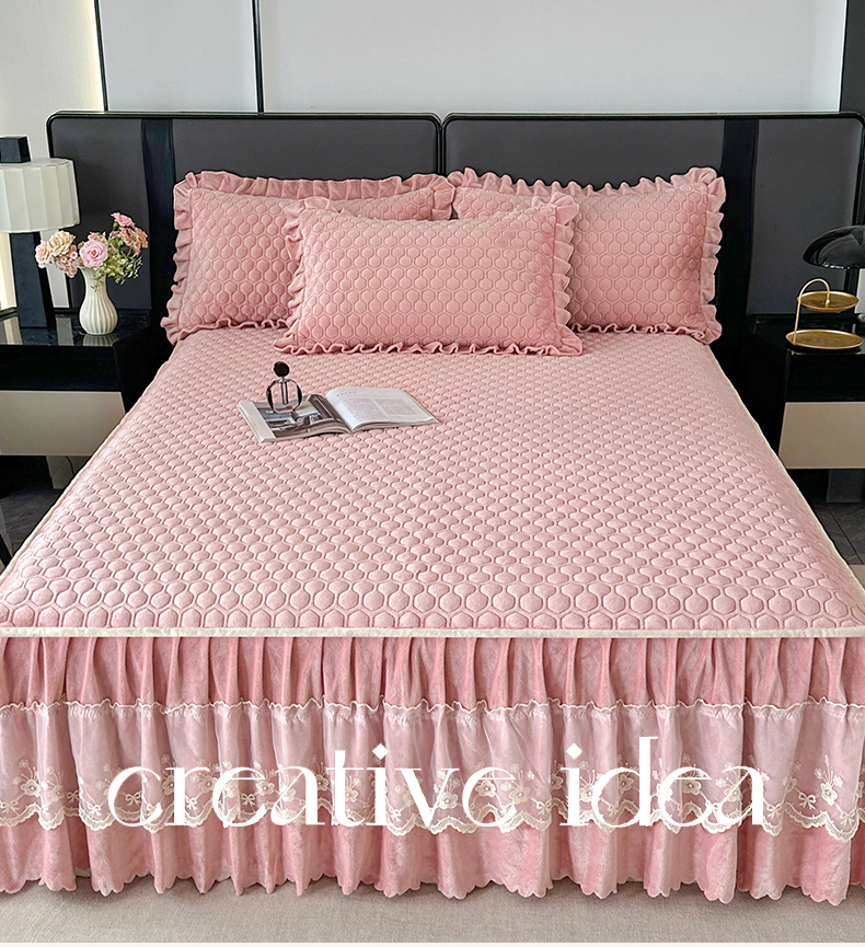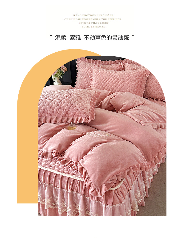 商品名称:董韵家纺 2025新款牛奶绒刺绣夹棉床裙四件套系列(控价) 丝语-浅豆沙