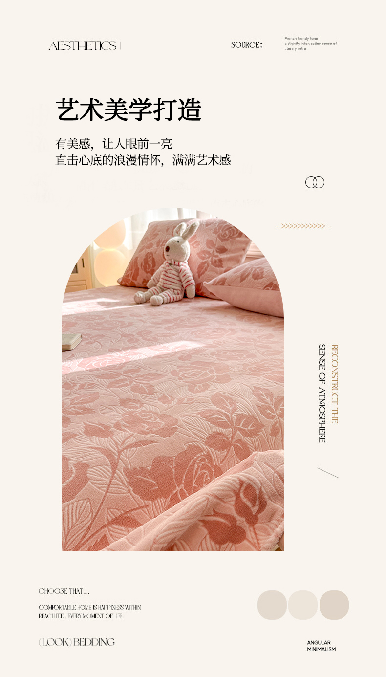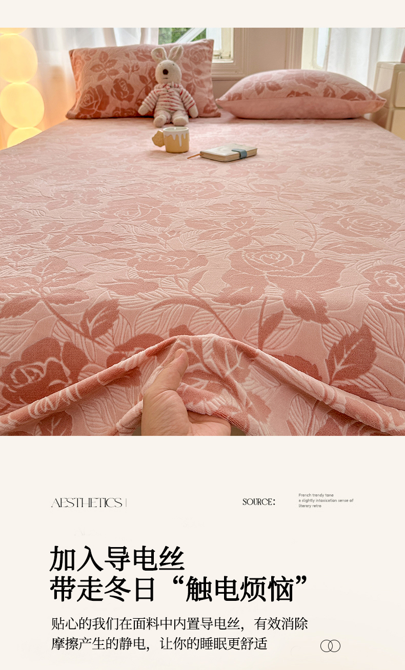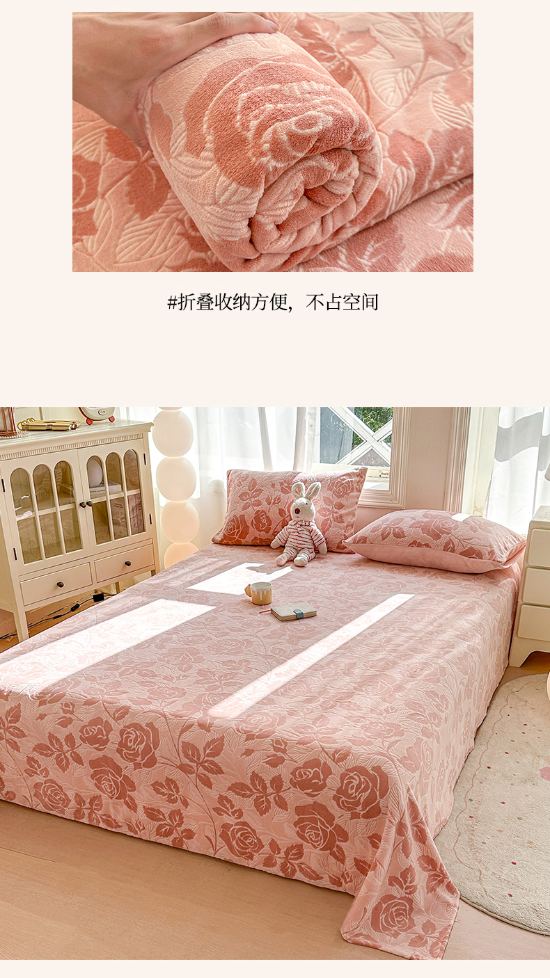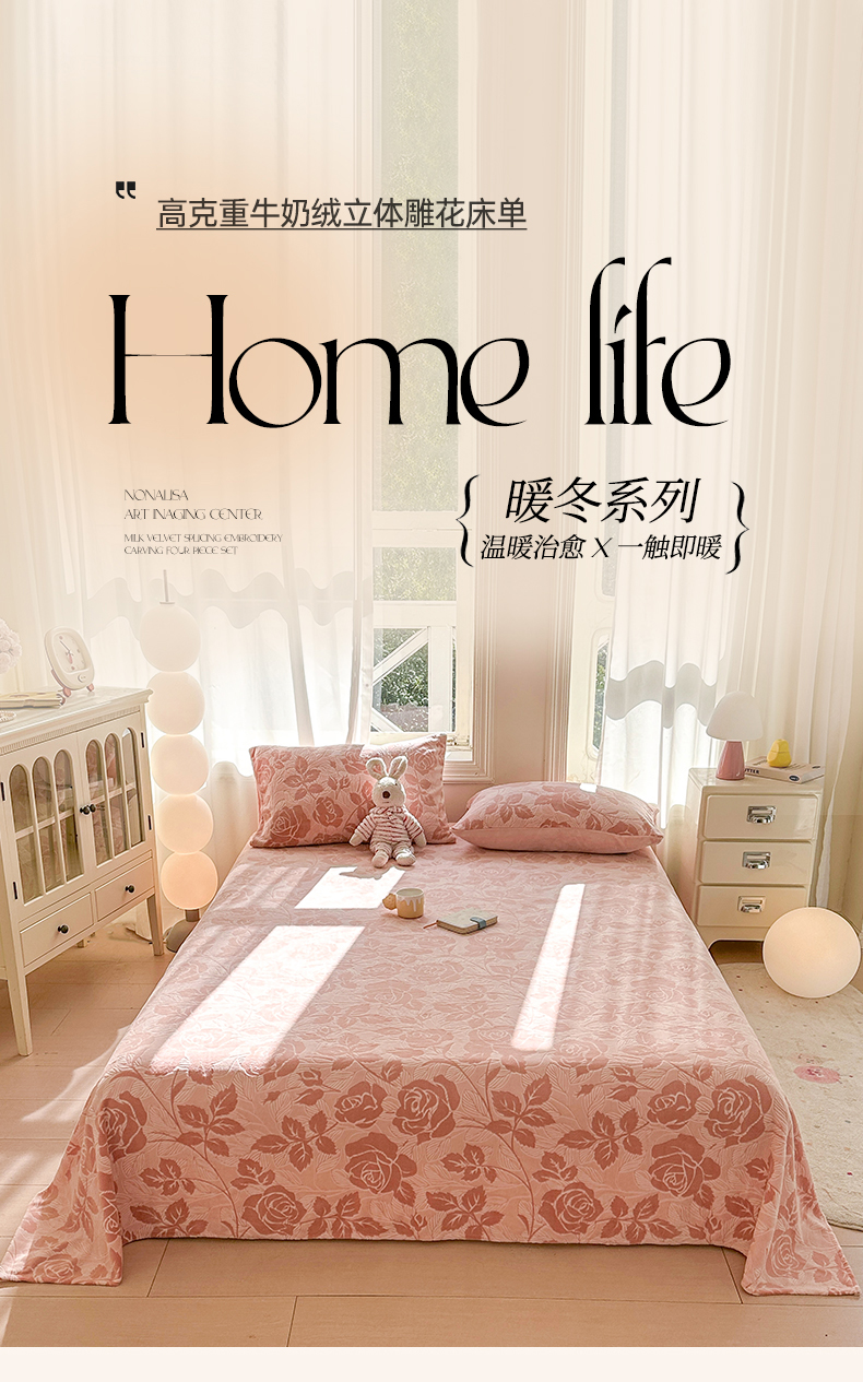 • 91家纺网 家纺一手货源 找家纺 灰鲸 2025新款立体雕花牛奶绒床单单床单单品床单单件 爱意-粉