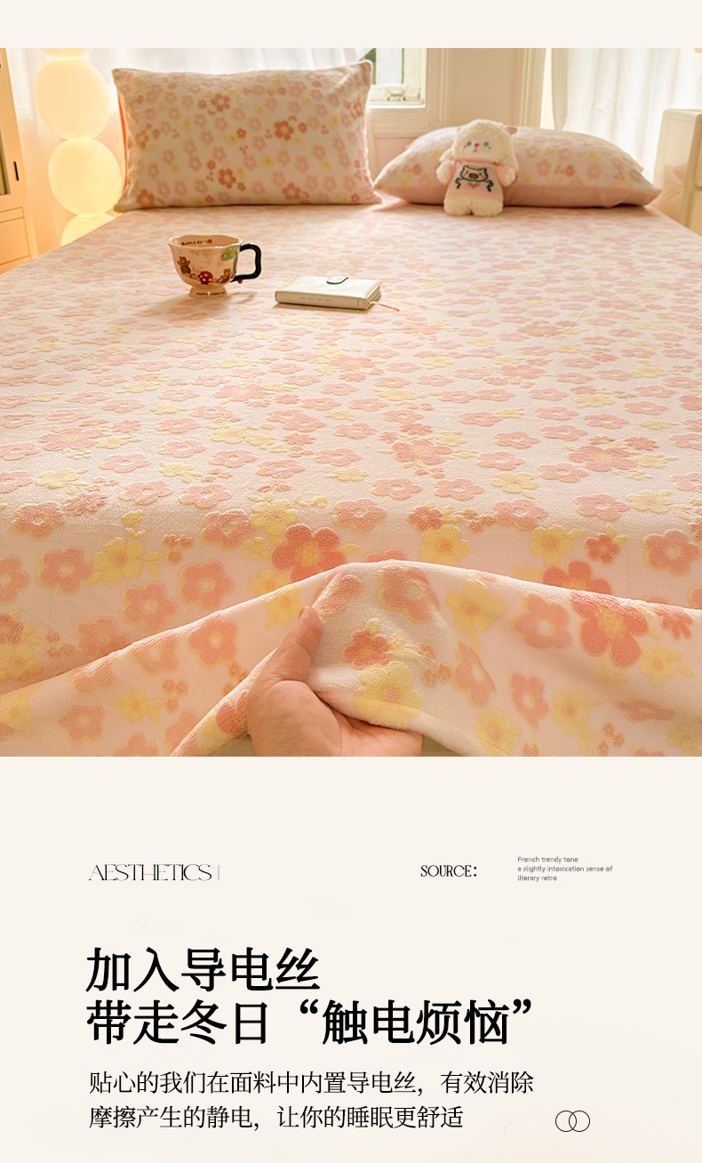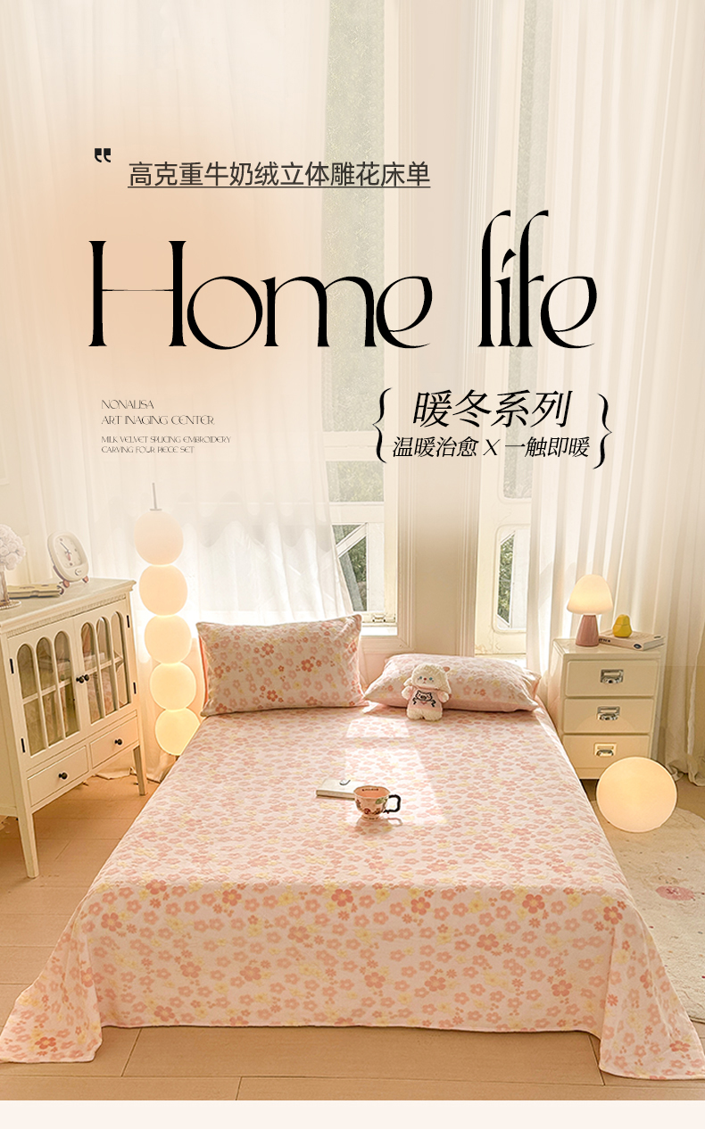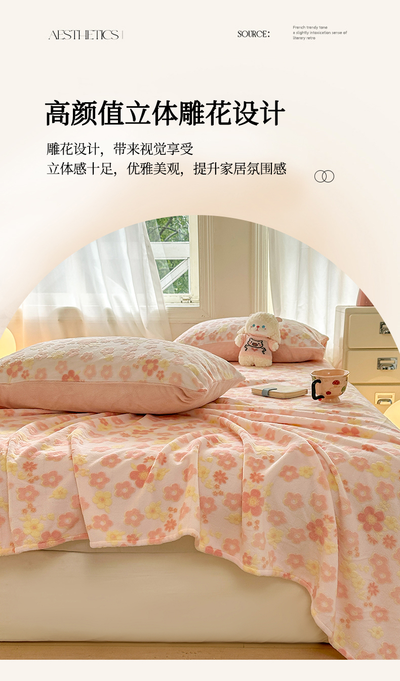 • 91家纺网 家纺一手货源 找家纺 灰鲸 2025新款立体雕花牛奶绒床单单床单单品床单单件 花海-粉