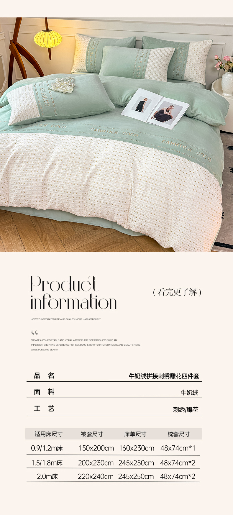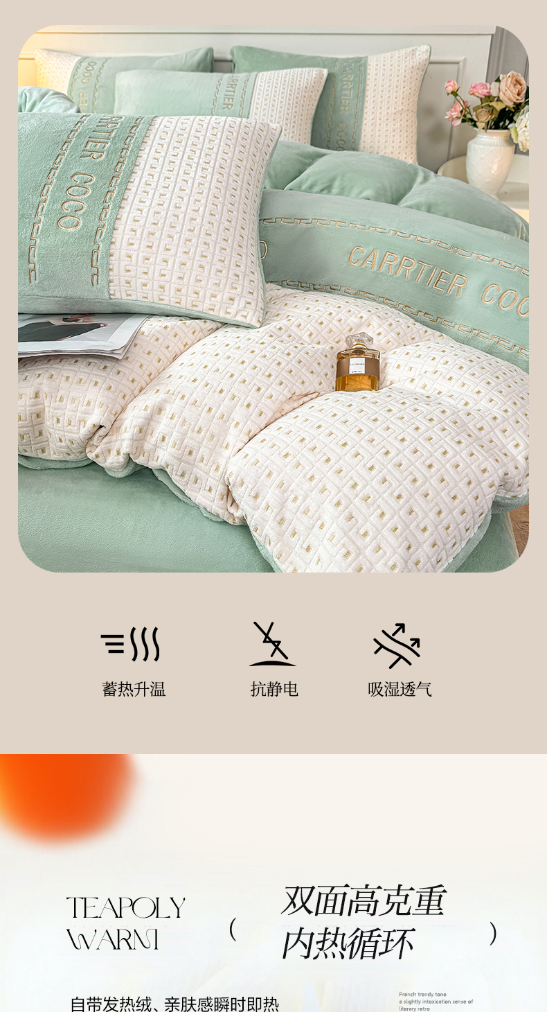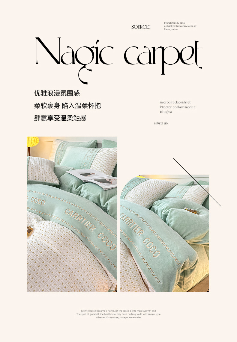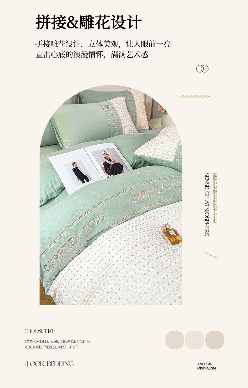 当前位置: 91家纺网 > 商品网购 > 床品套件 > 四件套 > 牛奶绒四件套 > 灰鲸 2025新款牛奶绒刺绣拼接款四件套-威廉 威廉-抹茶绿