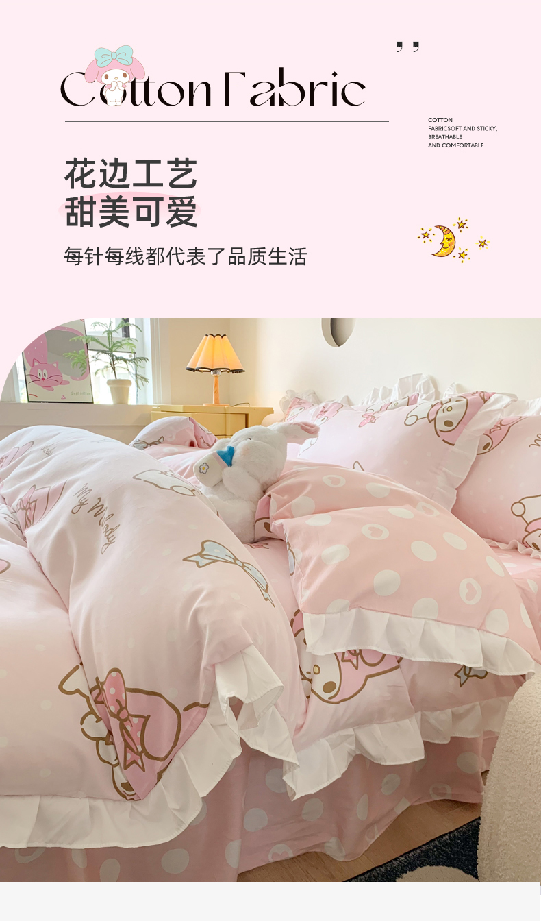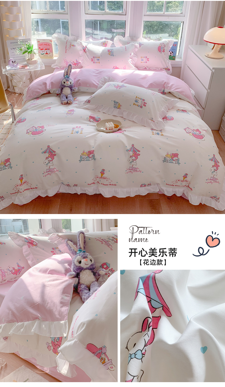 当前位置: 91家纺网 > 商品网购 > 床品套件 > 四件套 > 全棉普通四件套 > 玉元坊 2025新款全棉纯棉美乐蒂白花边款式四件套 花边-蝴蝶结美乐蒂