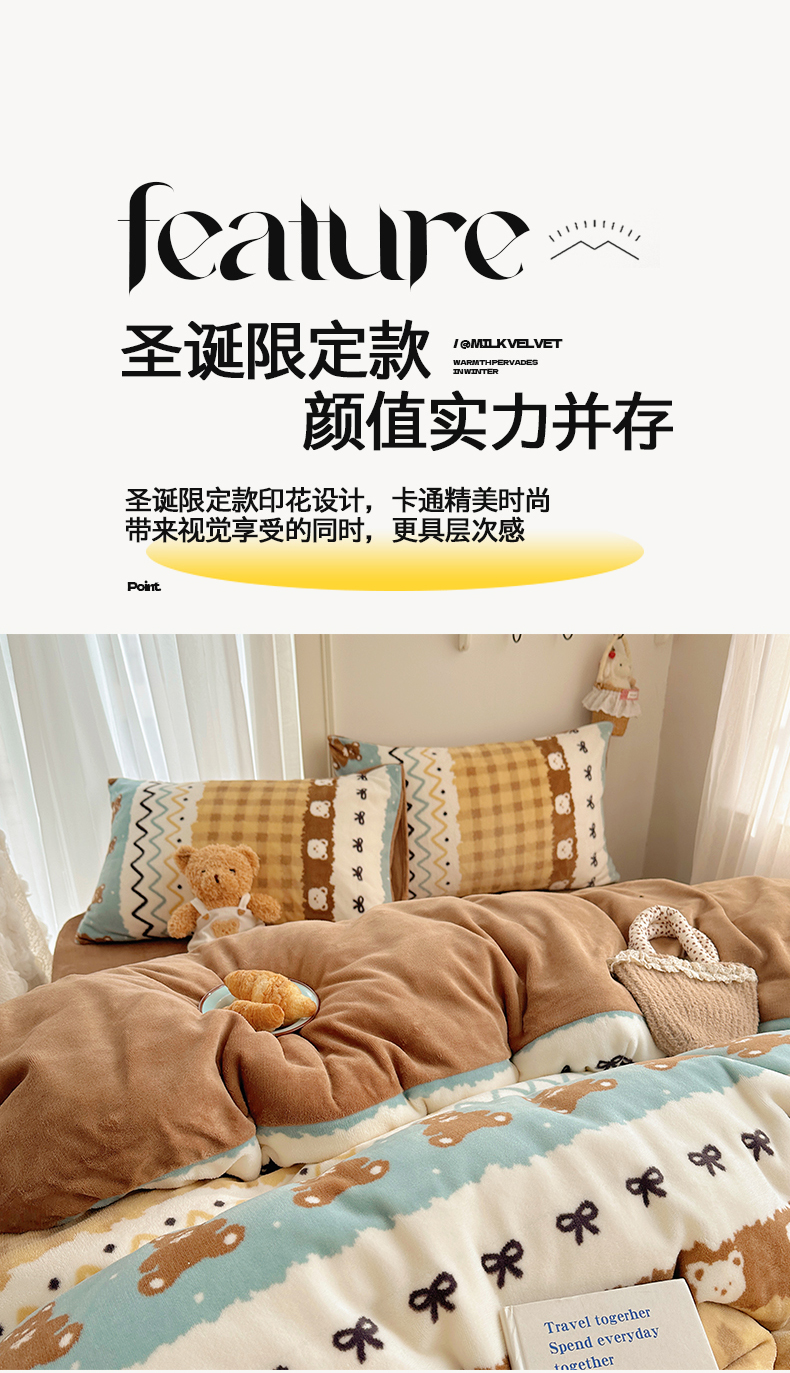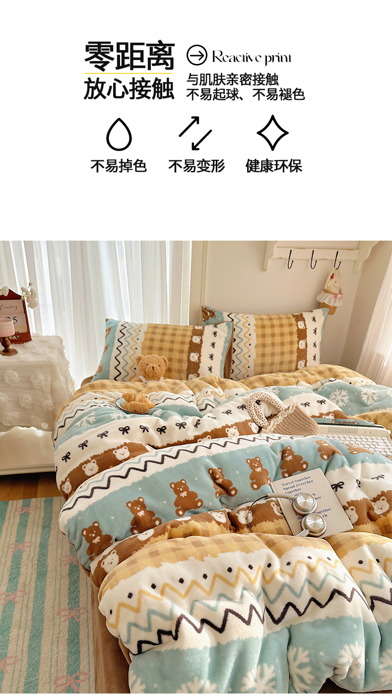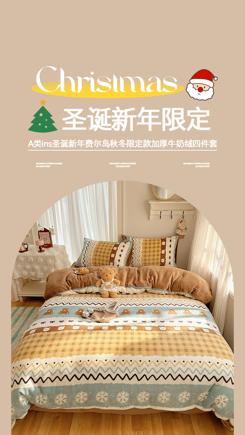 当前位置: 91家纺网 > 商品网购 > 床品套件 > 四件套 > 牛奶绒四件套 > 桃子家居 2025新款A类ins圣诞新年费尔岛秋冬限定款加厚牛奶绒系列四件套 绒-费尔岛小熊