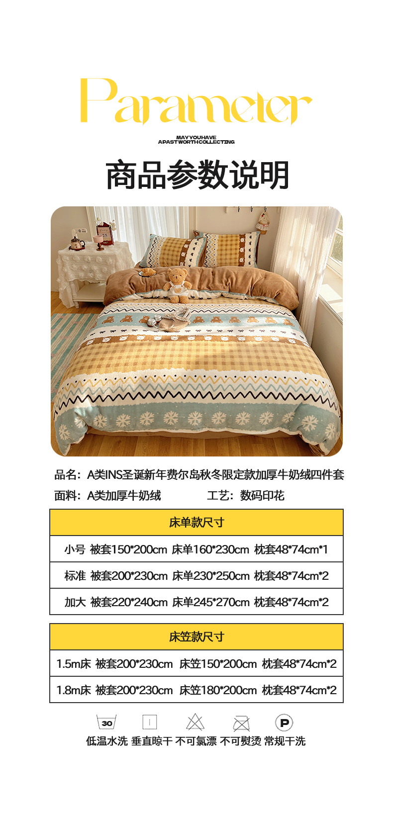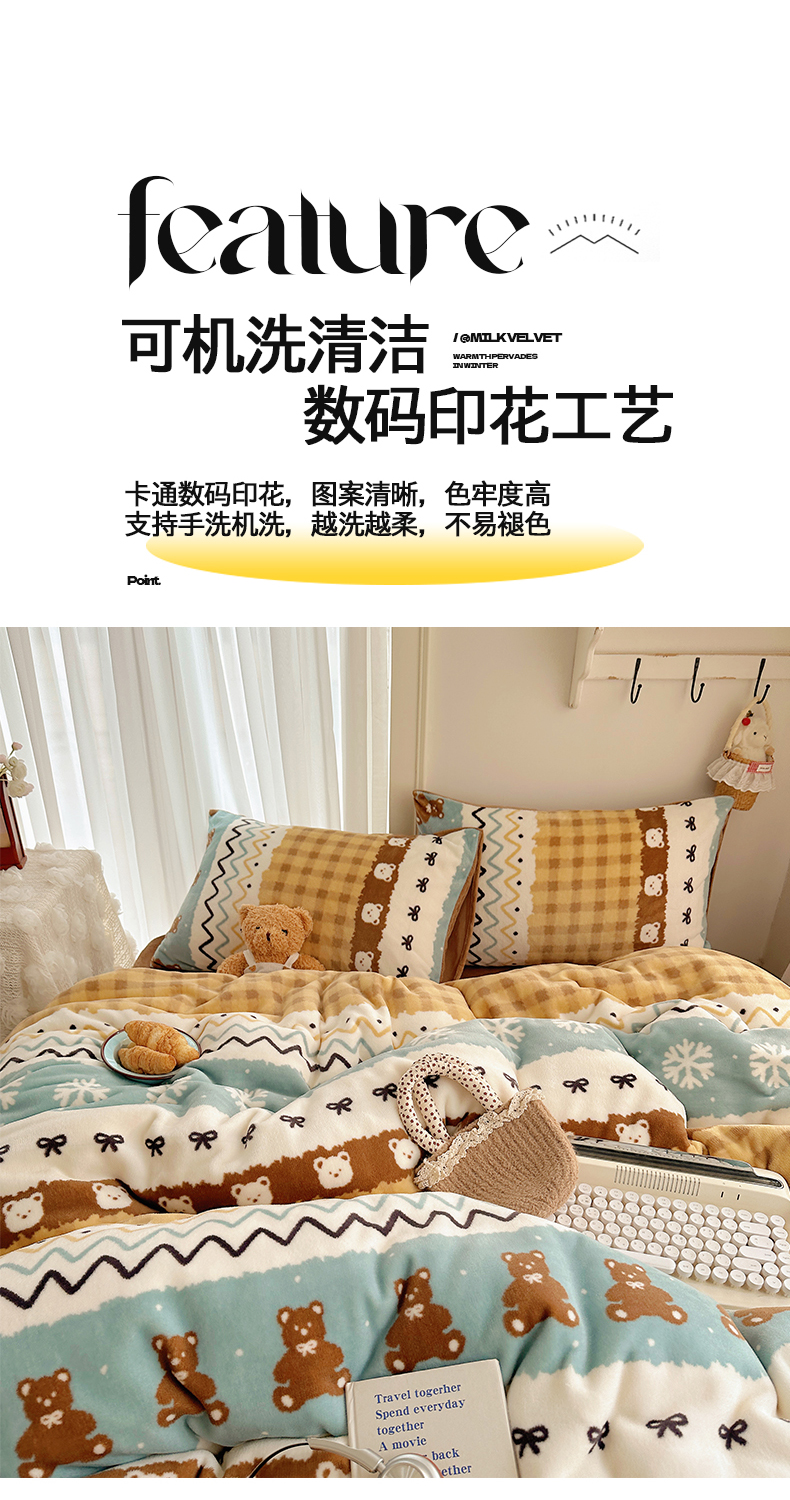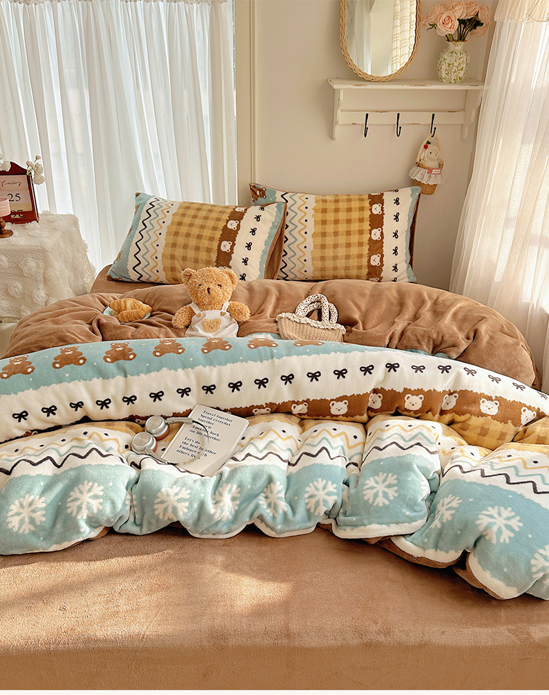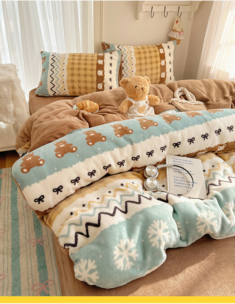 当前位置: 91家纺网 > 商品网购 > 床品套件 > 四件套 > 牛奶绒四件套 > 桃子家居 2025新款A类ins圣诞新年费尔岛秋冬限定款加厚牛奶绒系列四件套 绒-费尔岛小熊