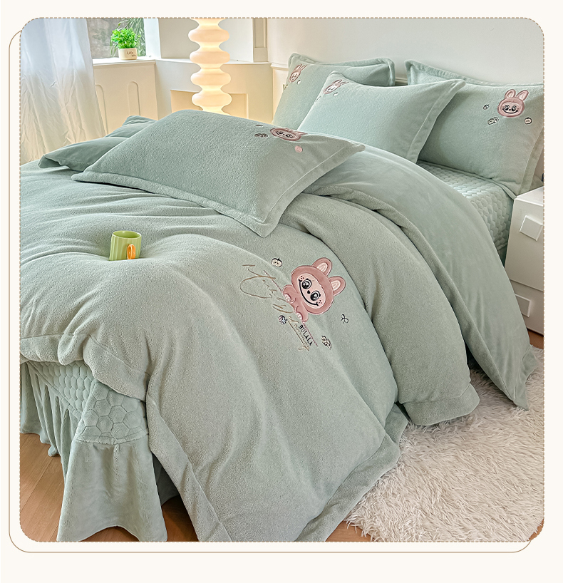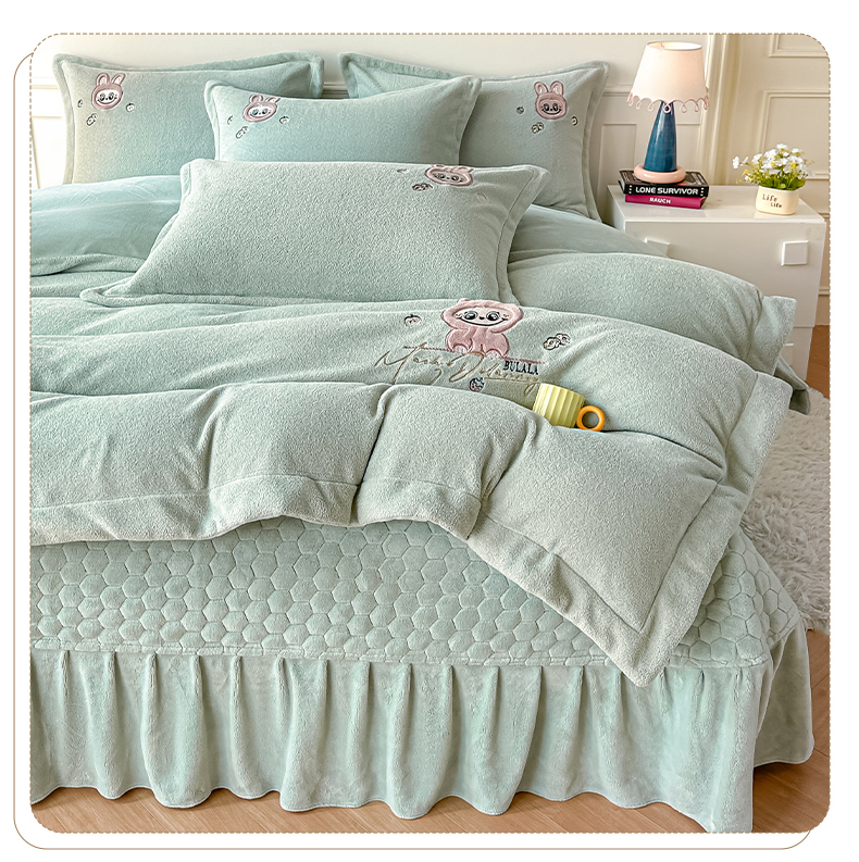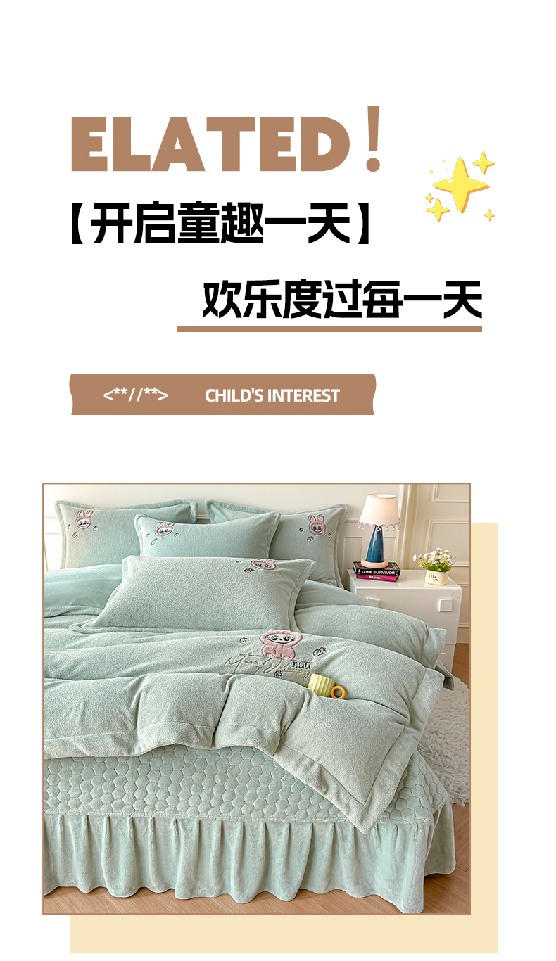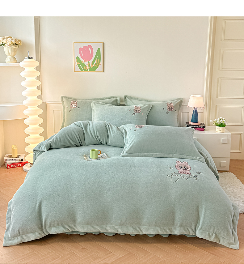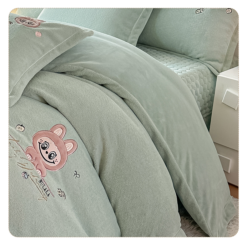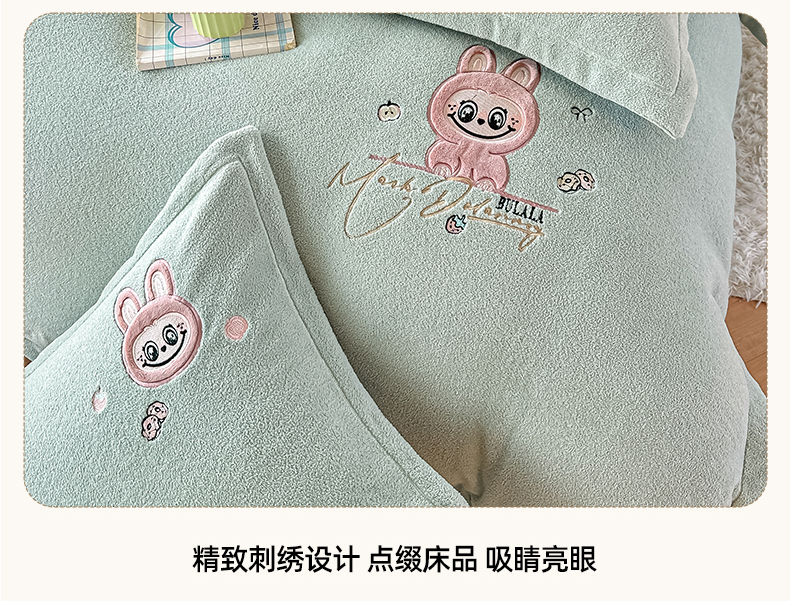 (总)诺可 2025新款秋冬牛奶绒床盖款四件套-咩羊乐园,咩羊乐园-粉色,咩羊乐园-灰色,咩羊乐园-蓝色,咩羊乐园-绿色