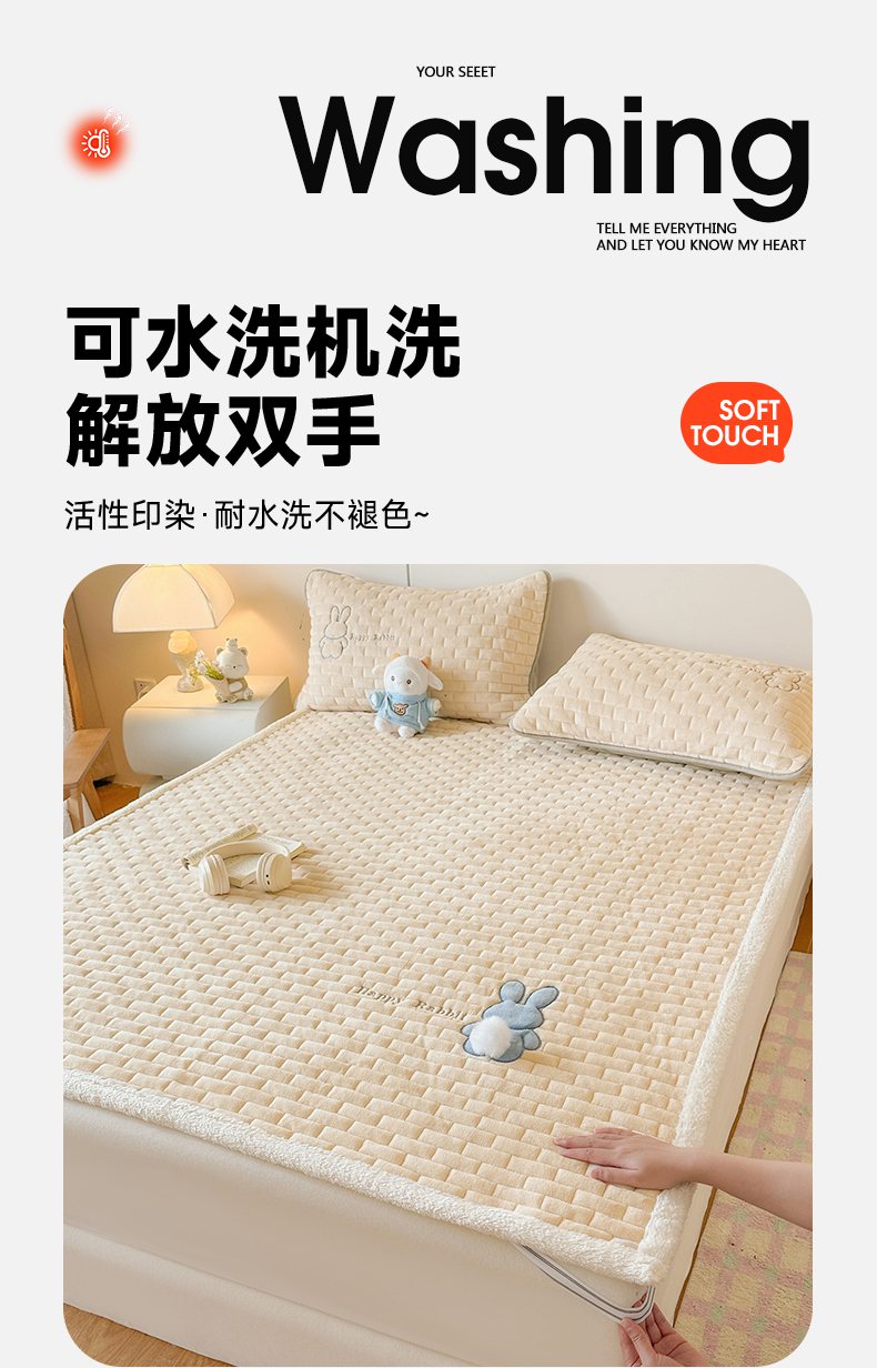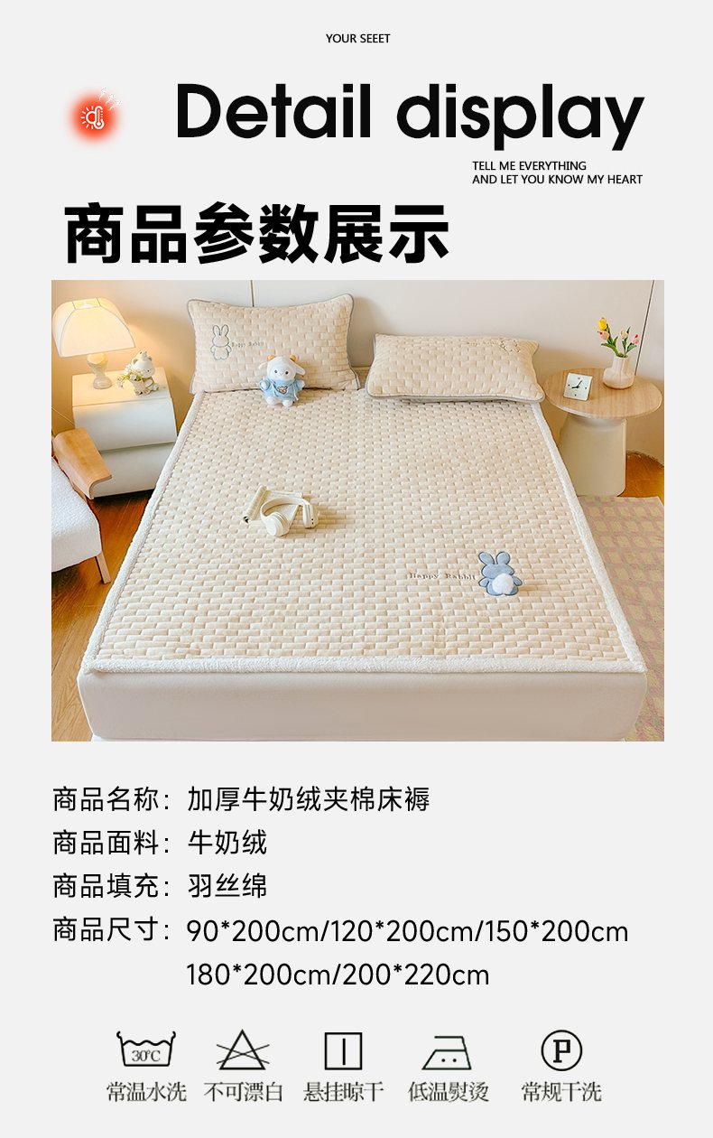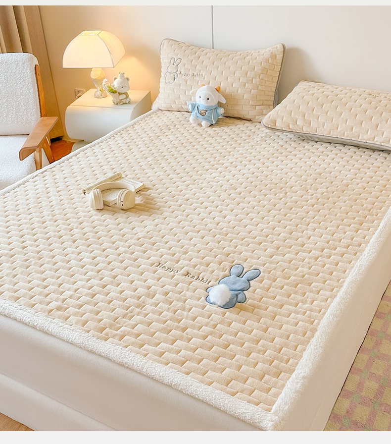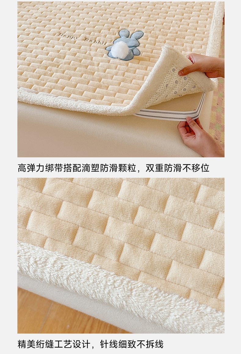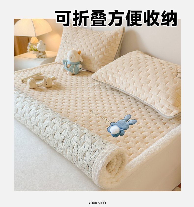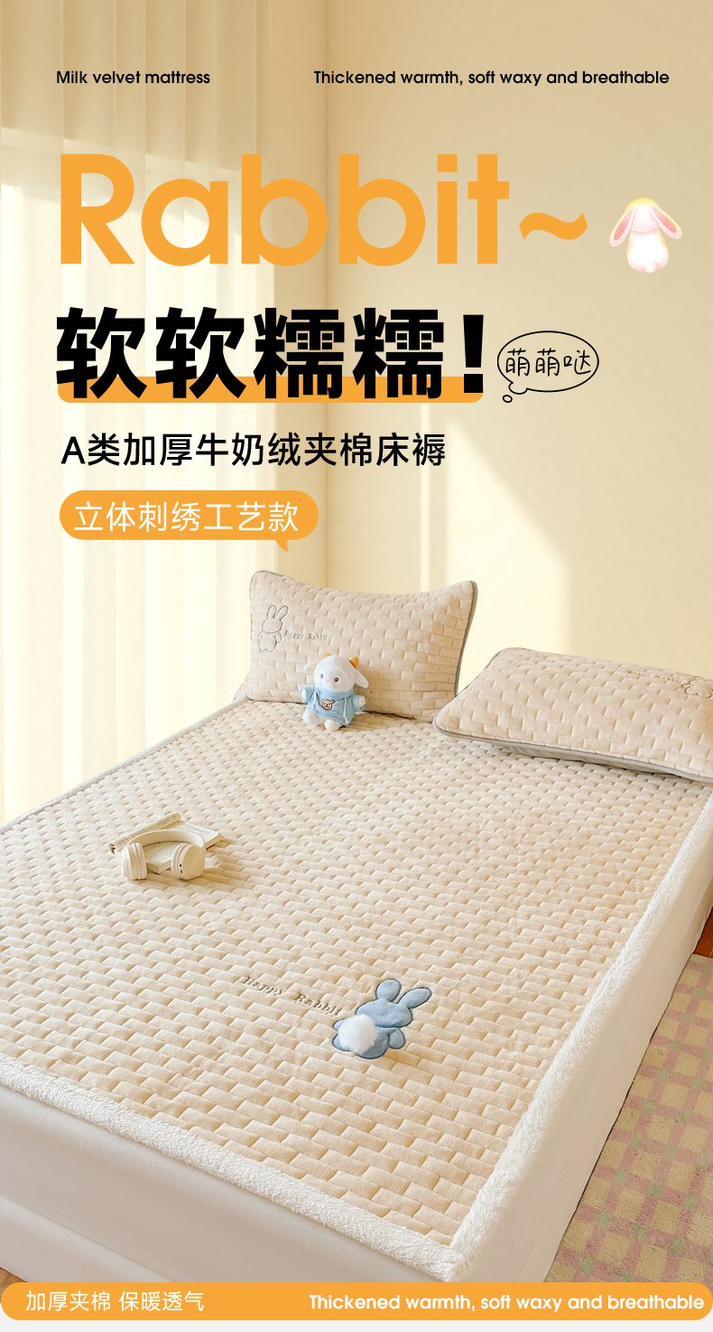 当前位置: 91家纺网 > 商品网购 > 床垫/床褥 > 普通床垫 > 恋绒家纺 2025新款贴布绣牛奶绒床褥床垫 Q萌小兔-香槟