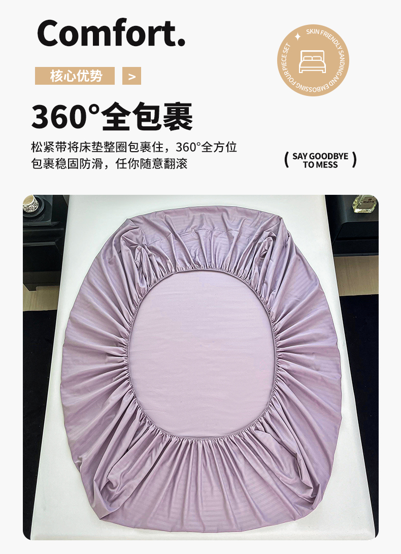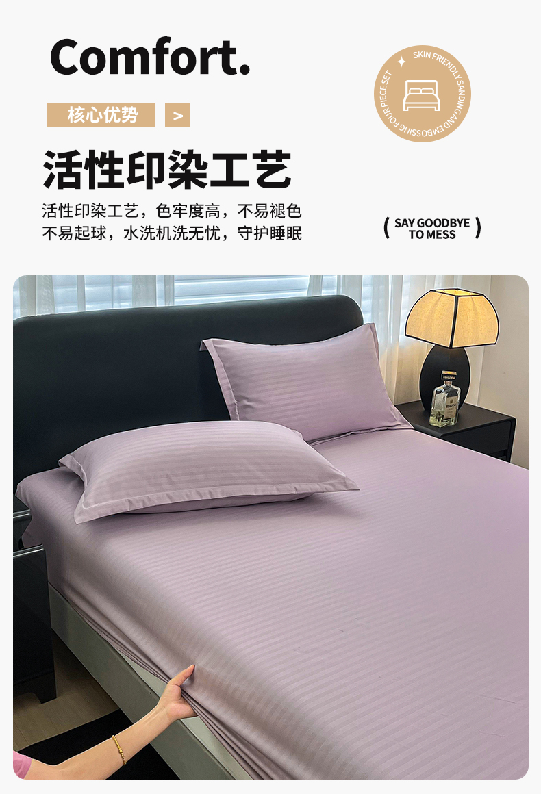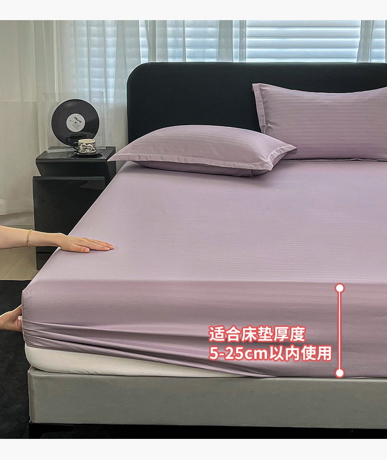 • 91家纺网 家纺一手货源 找家纺 恬澳家纺 2025新款简约磨毛压花床笠外贸跨境电商亚马逊速卖通单床笠三件套欧美尺寸多多跨境平台TEMU SHEIN 条纹-紫