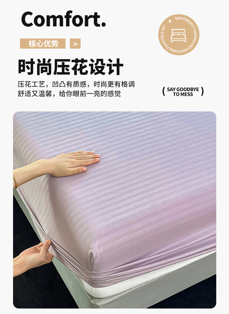 当前位置: 91家纺网 > 商品网购 > 床上用品 > 床笠 > 恬澳家纺 2025新款简约磨毛压花床笠外贸跨境电商亚马逊速卖通单床笠三件套欧美尺寸多多跨境平台TEMU SHEIN 条纹-紫