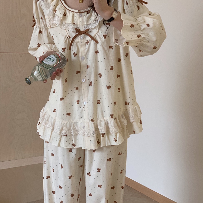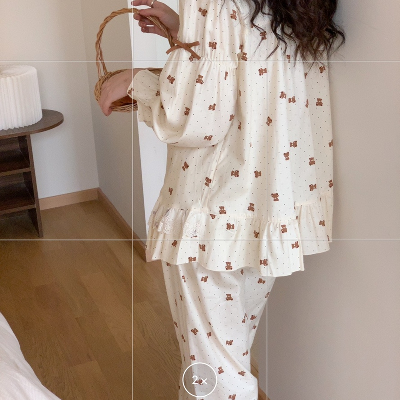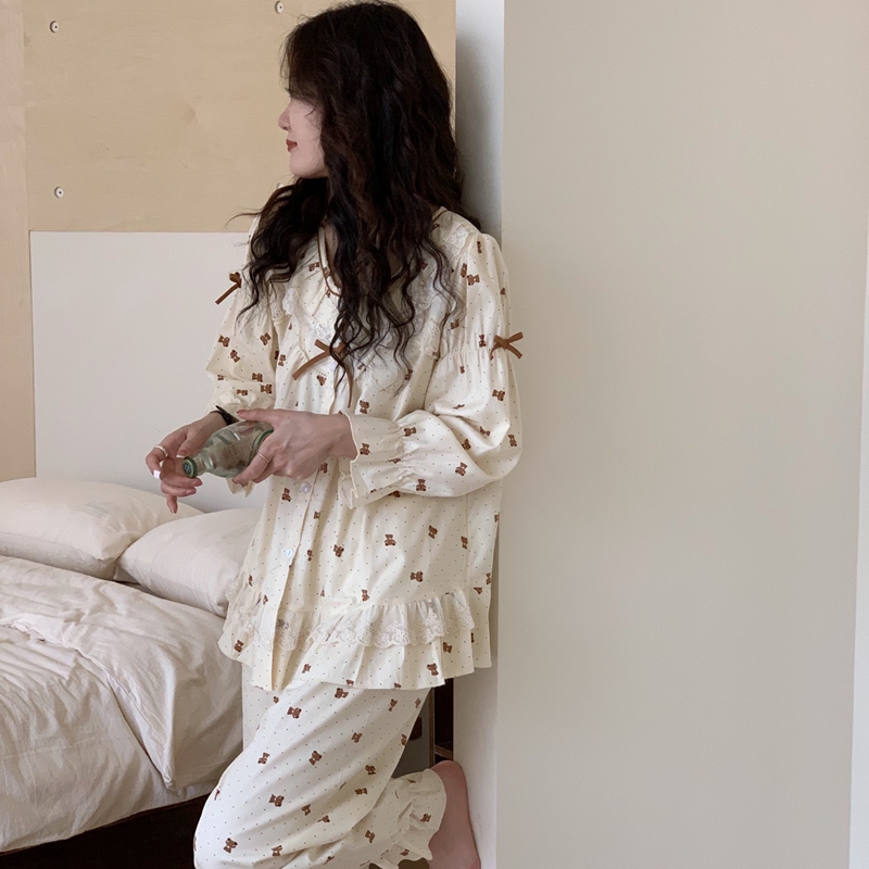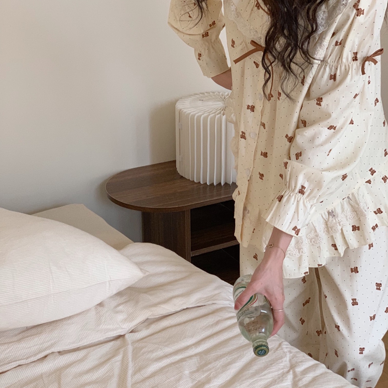 当前位置: 91家纺网 > 商品网购 > 居家日用 > 睡衣/家居服套装 > (总)妍景家居生活馆 2025新款82272-韩系点点蝴蝶结小熊套装