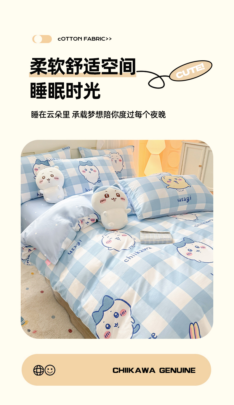 当前位置: 91家纺网 > 商品网购 > 床品套件 > 四件套 > 全棉普通四件套 > (总)博雅 2025新款吉伊卡哇正版授权全棉纯棉四件套-蓝格吉伊卡哇