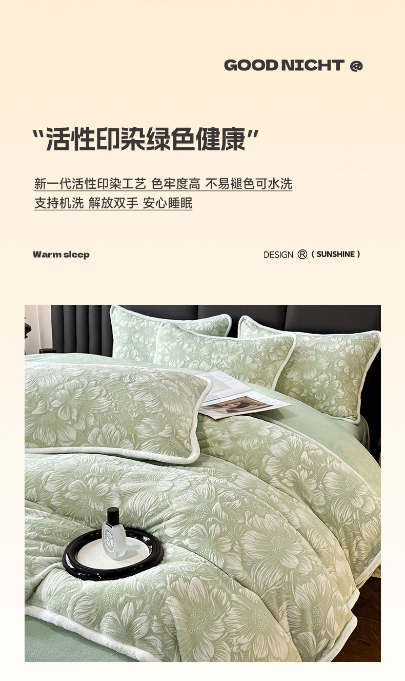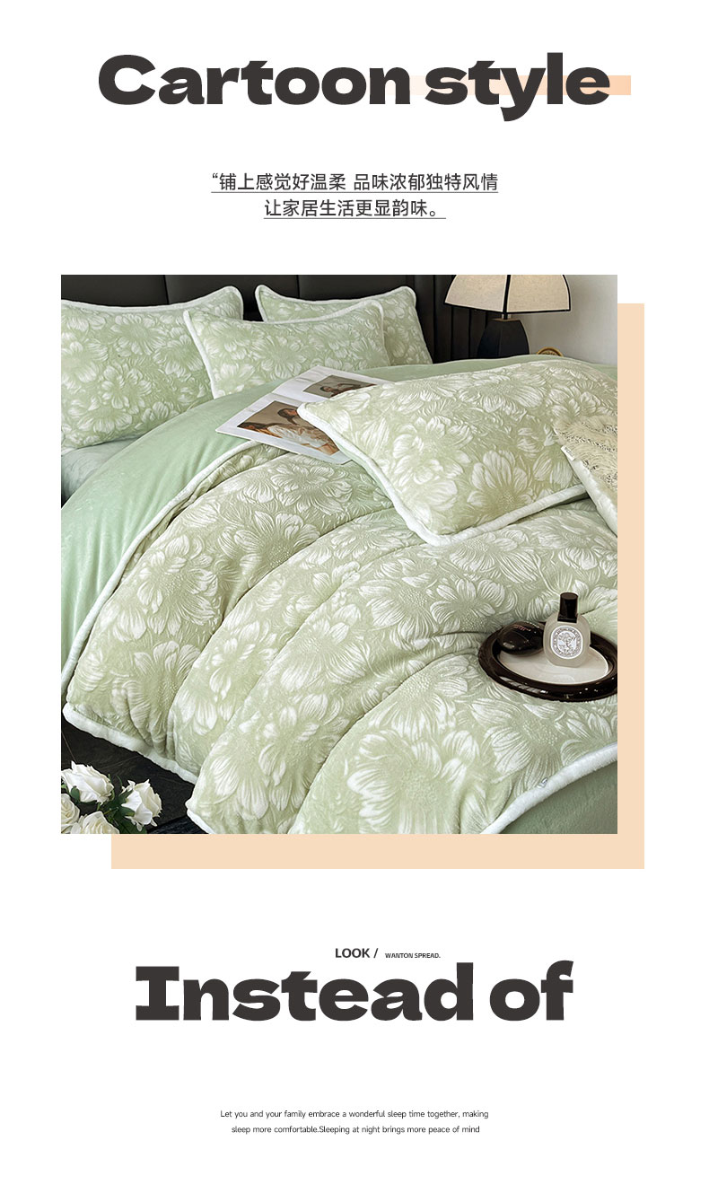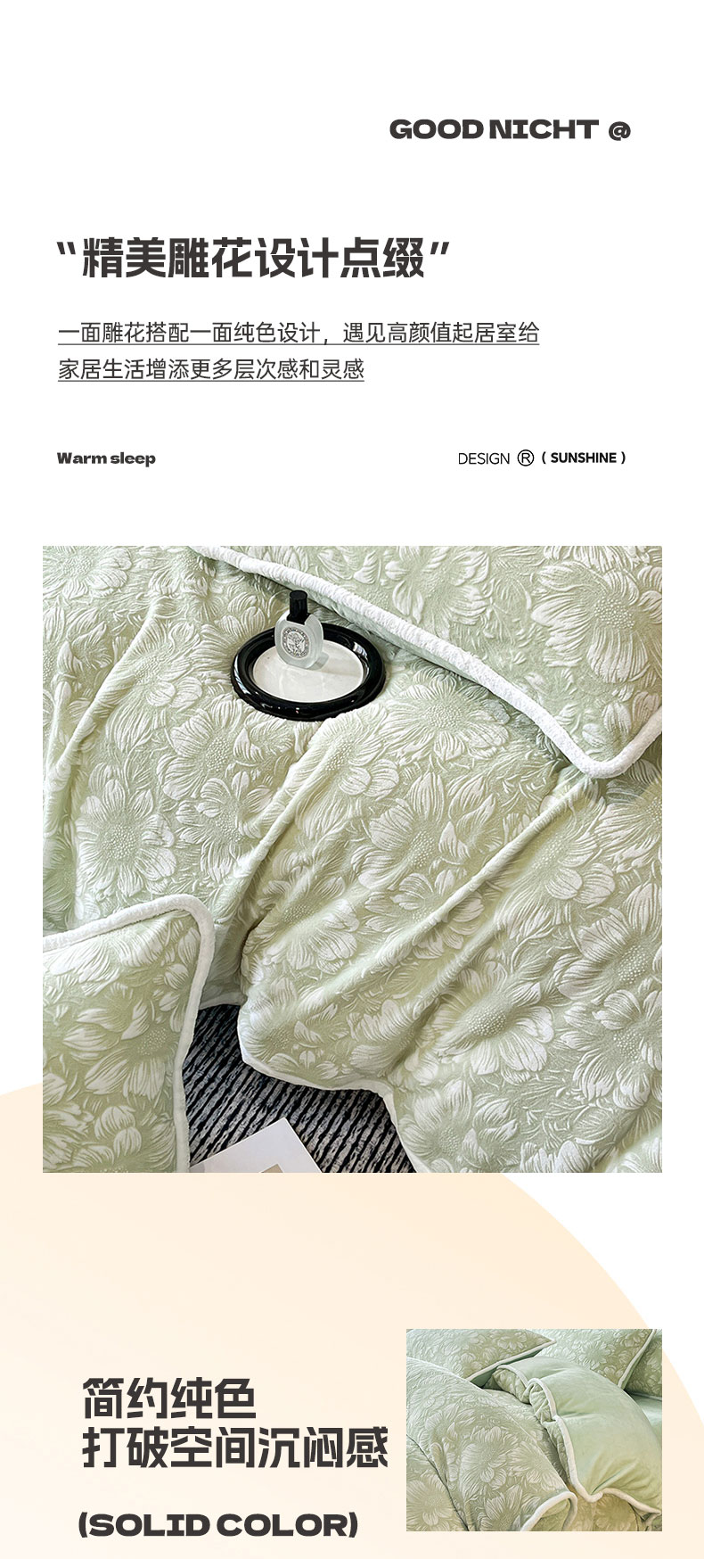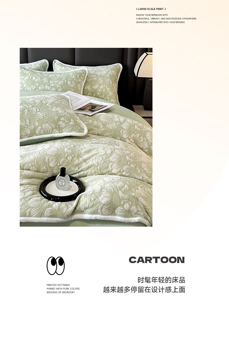 妮恒美家纺 2025新款雕花牛奶绒四件套 雪莲花-草绿