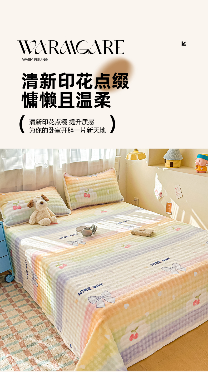 丝芙妮家居(原乐视家纺) 2025新款A类牛奶泡泡绒印花单品床单 春日樱桃