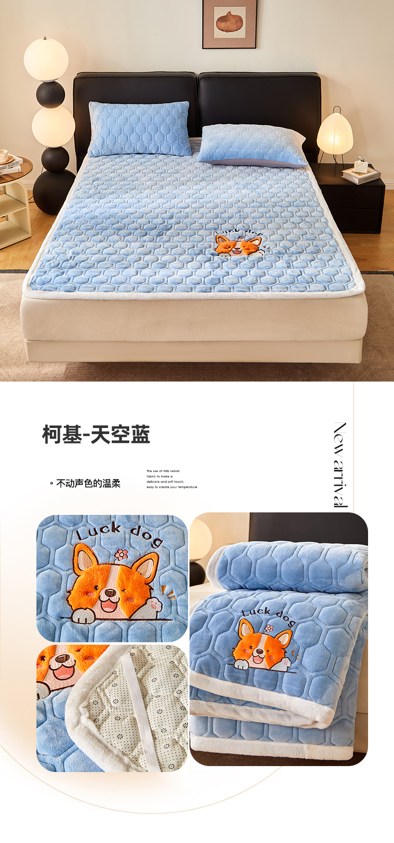 (总)永旺家纺 2025新款宝宝牛奶绒床护垫床垫-柯基,组合图仅供展示不可下单,柯基-黛粉,柯基-海洋蓝,柯基-咖啡色,柯基-抹茶绿,柯基-太空灰,柯基-天空蓝