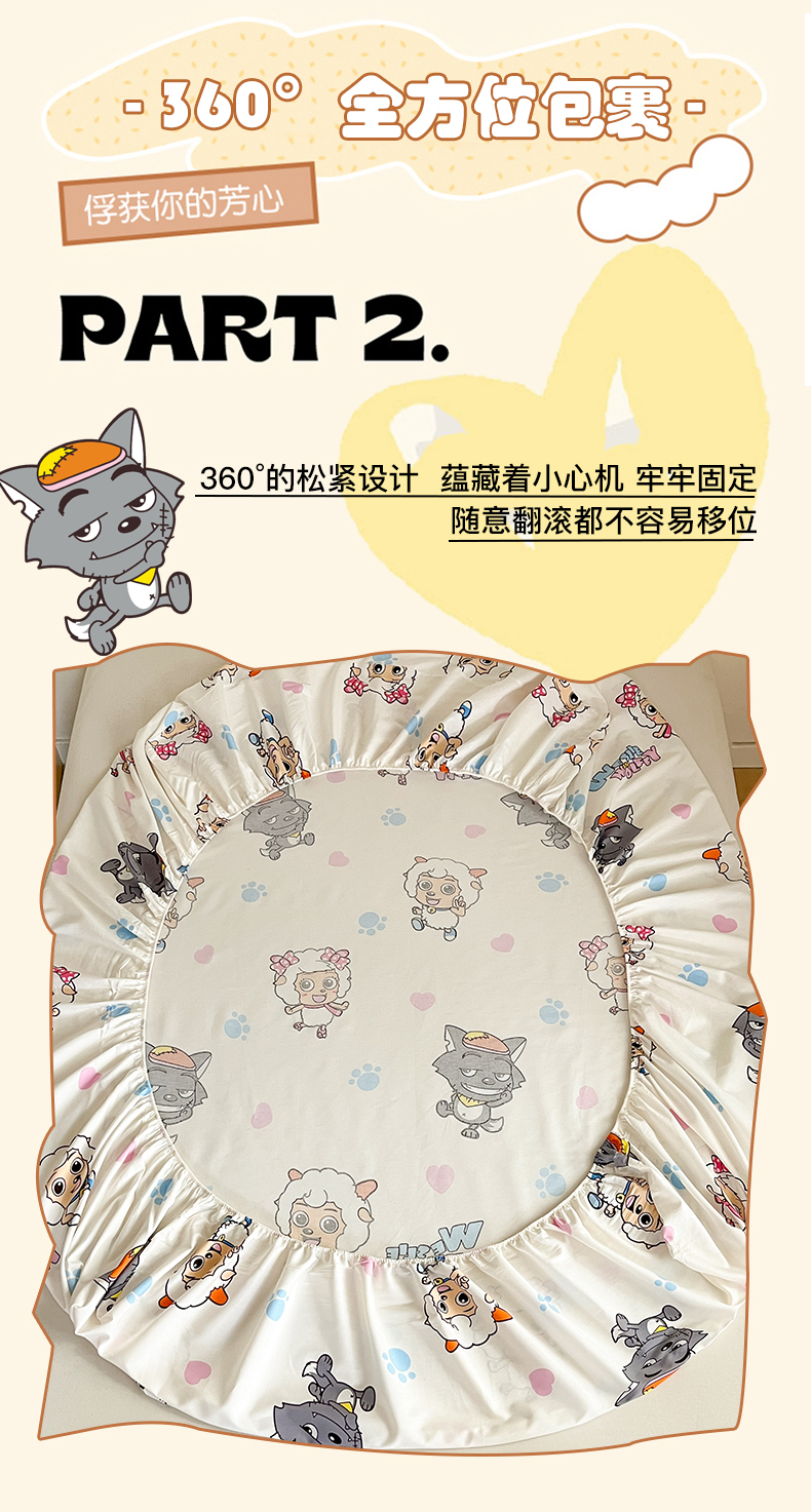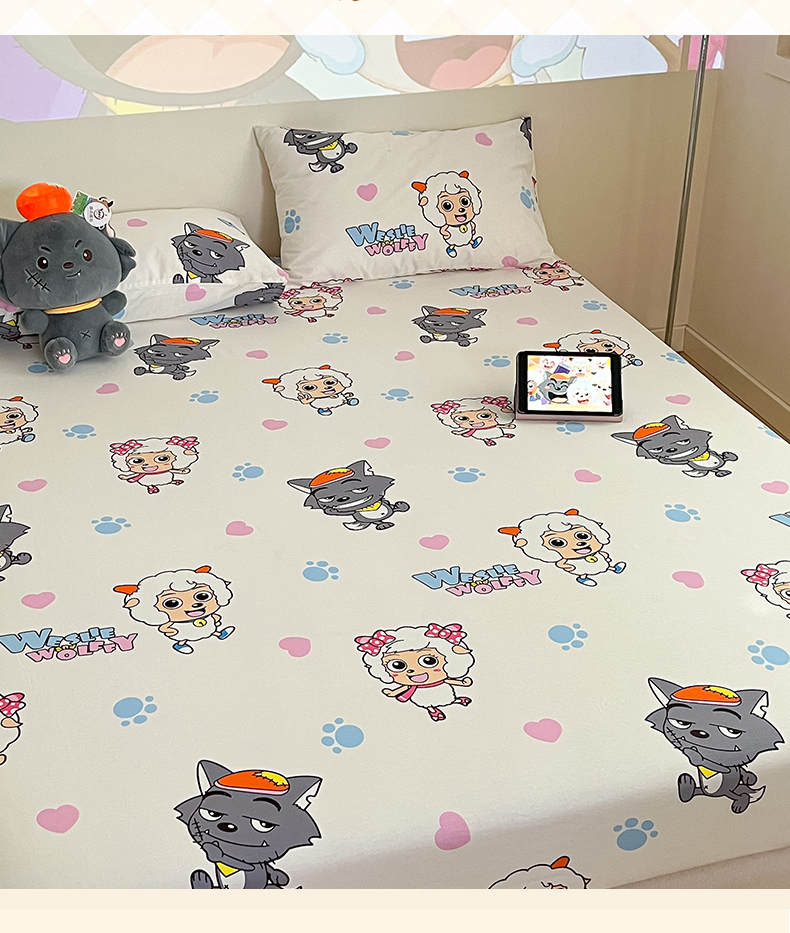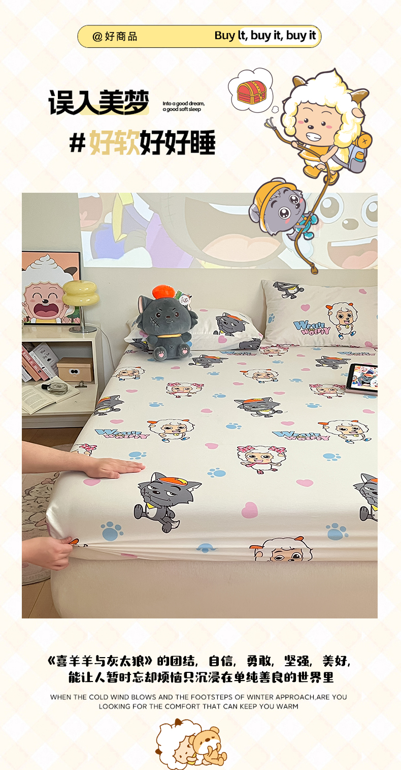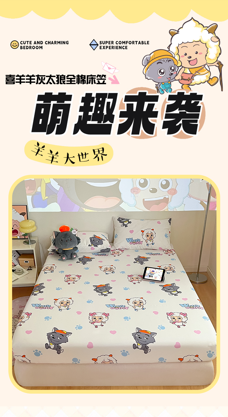金鑫汇家纺 2025新款喜羊羊与灰太狼全棉单品床笠 狼羊共舞