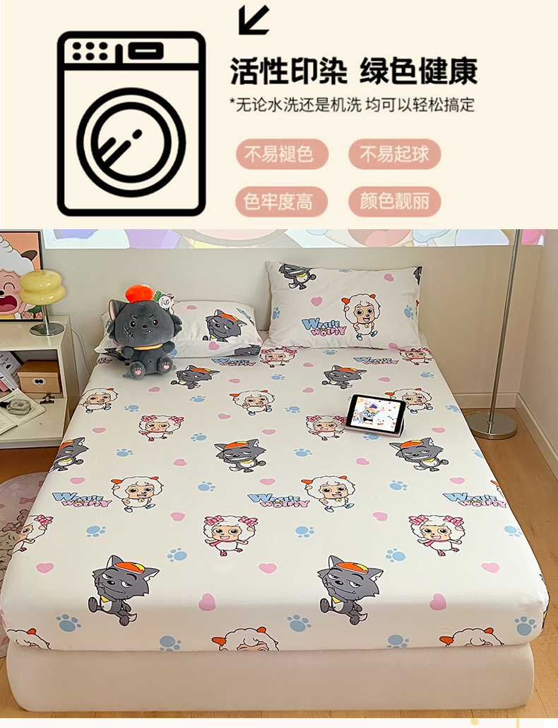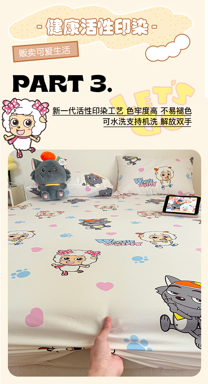 商品名称:金鑫汇家纺 2025新款喜羊羊与灰太狼全棉单品床笠 狼羊共舞