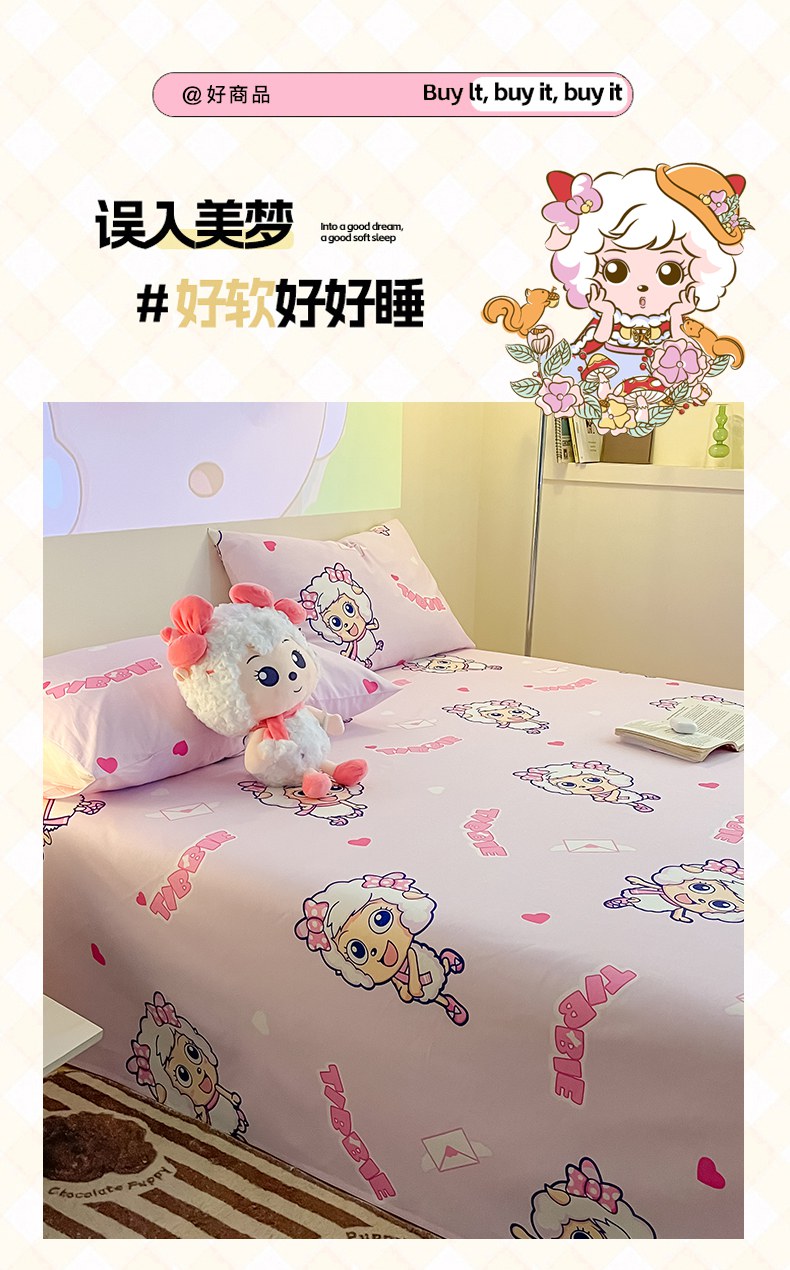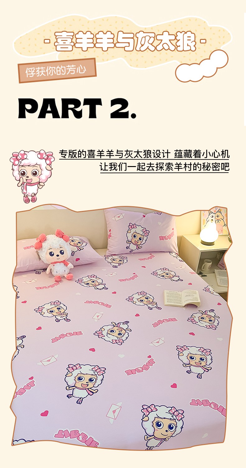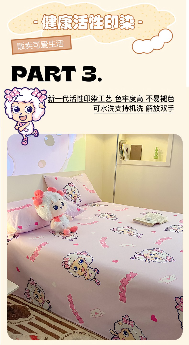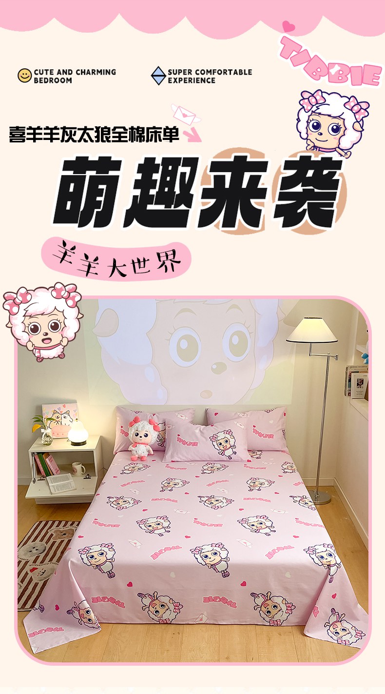 商品名称:金鑫汇家纺 2025新款喜羊羊与灰太狼全棉单品床单 乖巧美羊羊