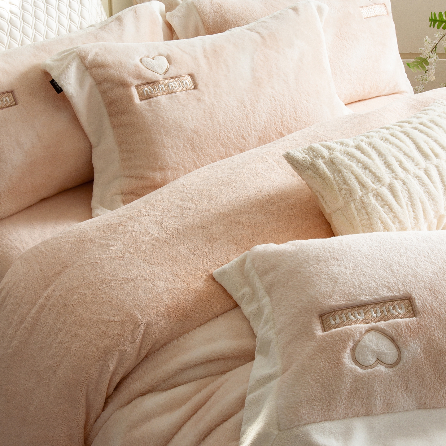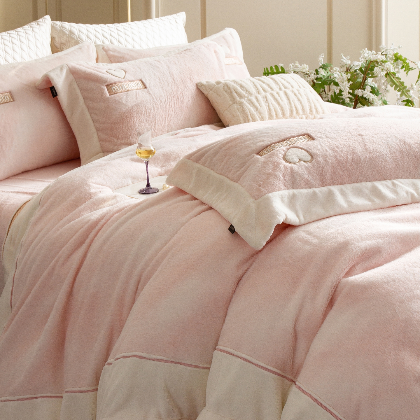 (总)馨蕊 2025新款意大利进口煦暖绒拼角工艺秋冬轻奢煦暖绒系列四件套-绒澜心 会员-10【券后控价338/358】,绒澜心-蔷薇粉,绒澜心-温莎红
