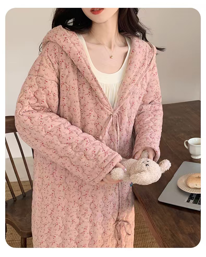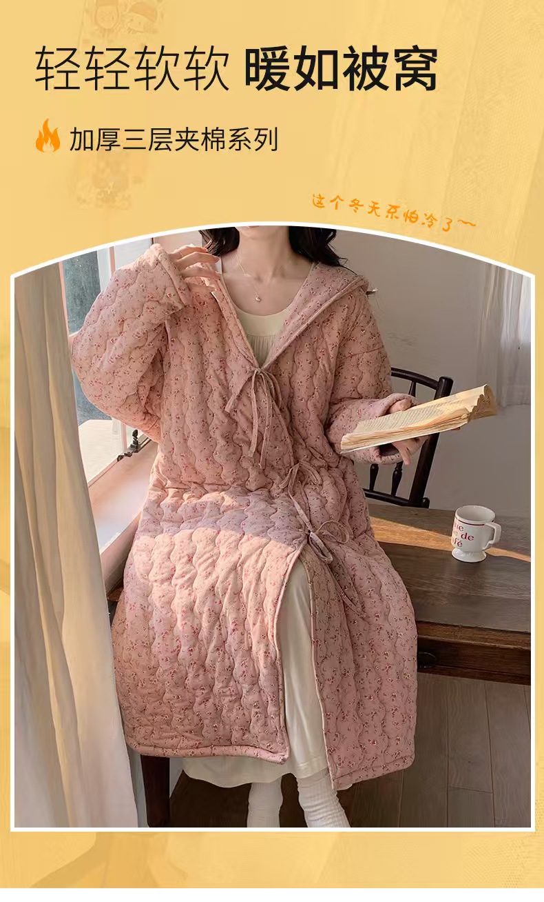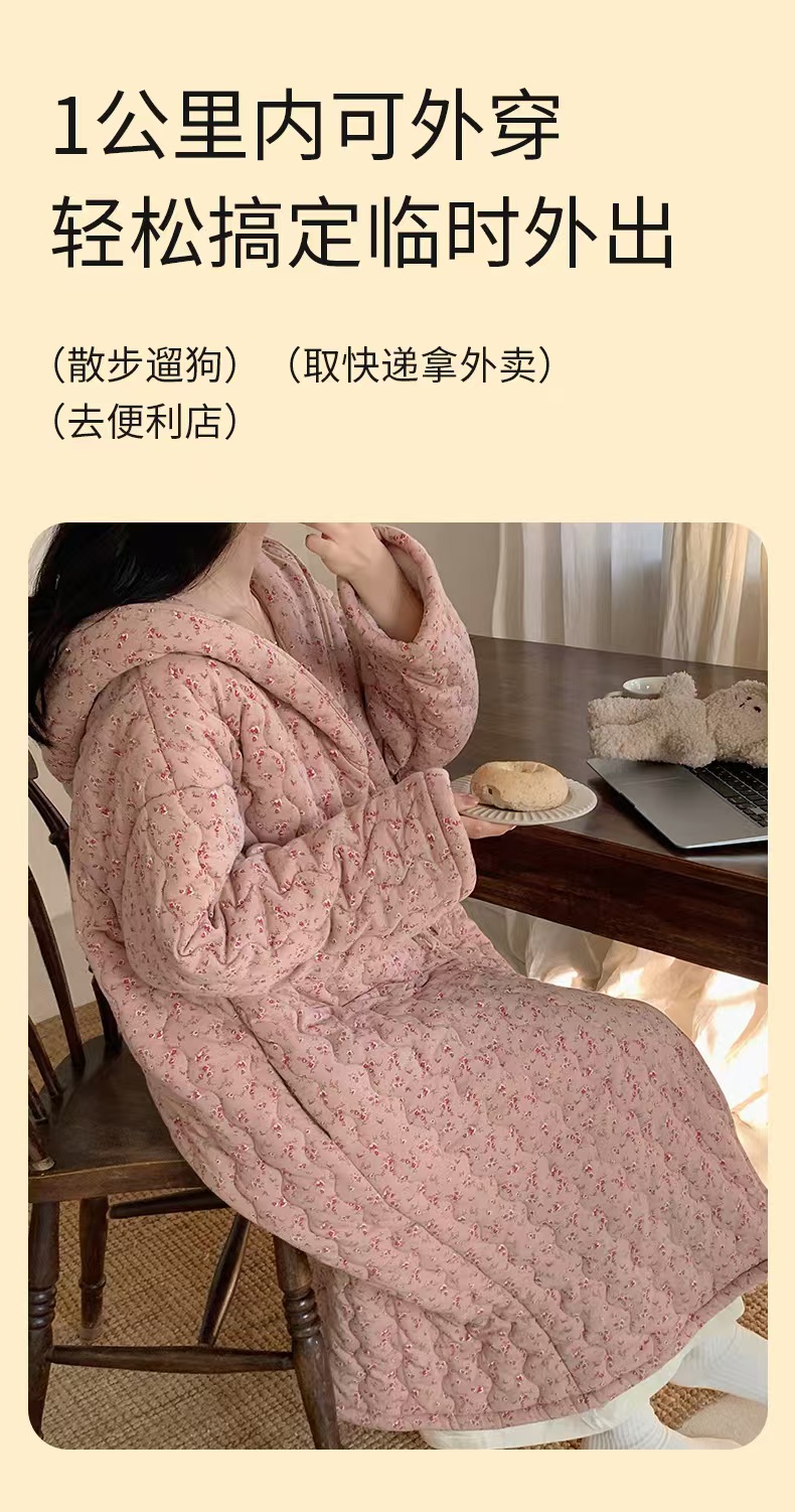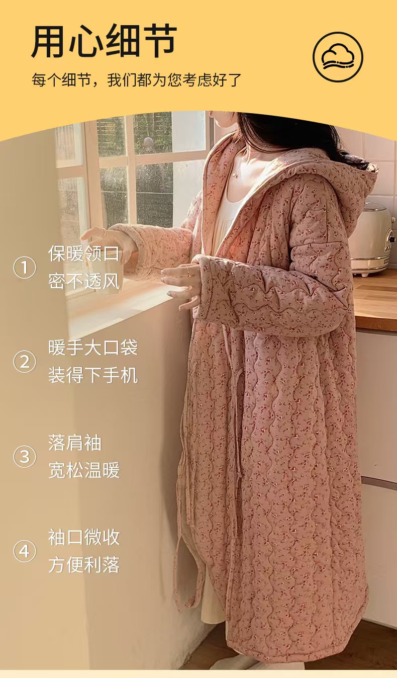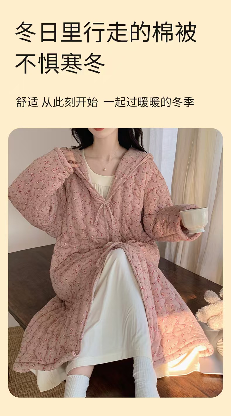 当前位置: 91家纺网 > 商品网购 > 居家日用 > 睡衣/家居服套装 > (总)洛兰沙家居馆 2025冬季新款碎花连帽三层夹棉加厚保暖睡袍中长款可外穿家居服浴袍女