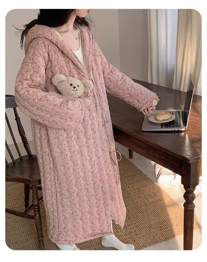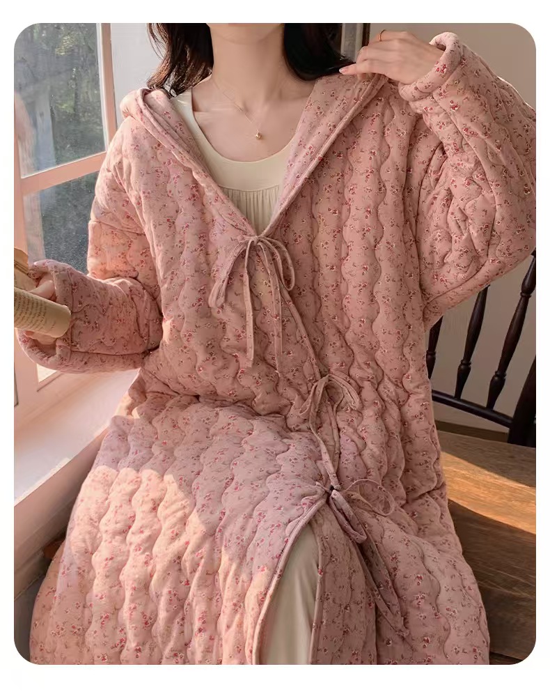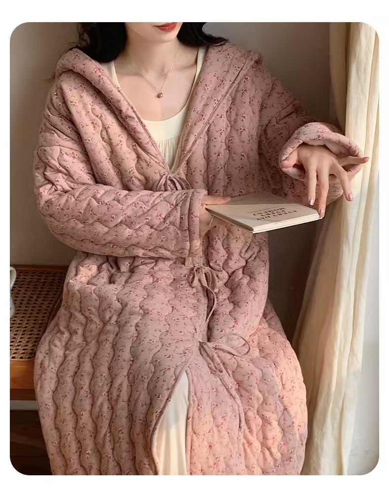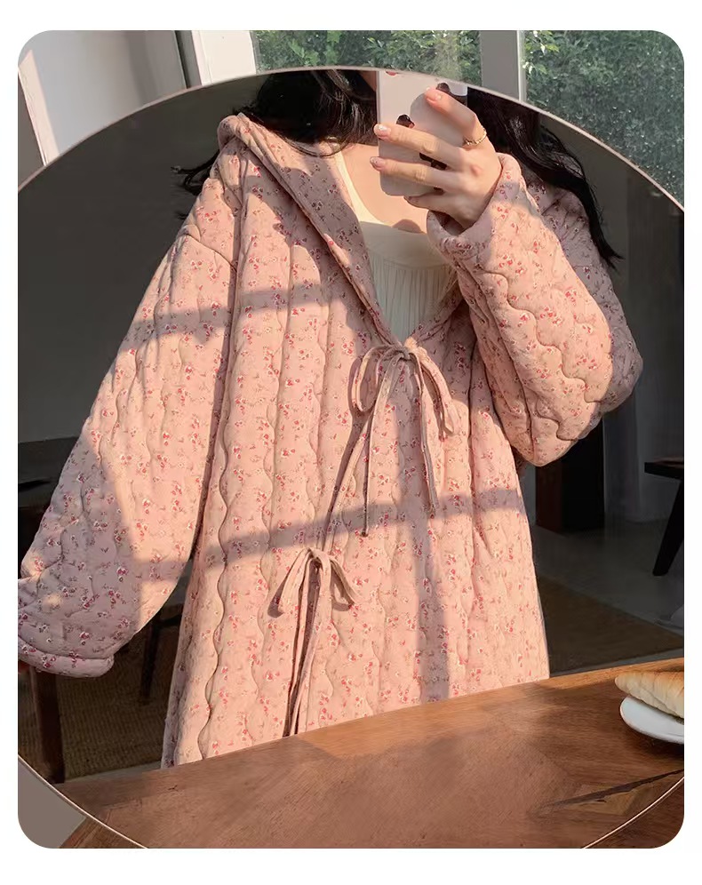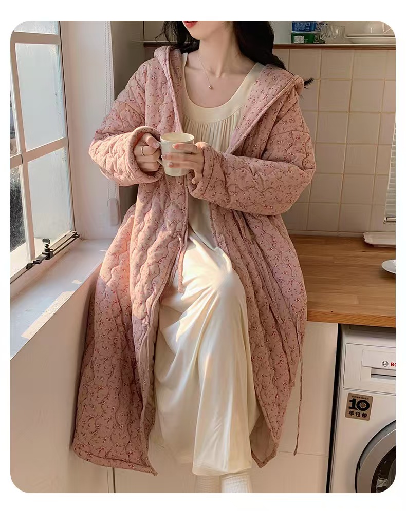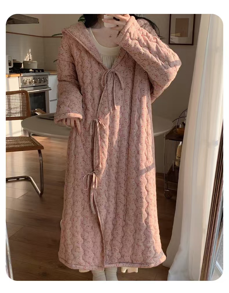 当前位置: 91家纺网 > 商品网购 > 居家日用 > 睡衣/家居服套装 > (总)洛兰沙家居馆 2025冬季新款碎花连帽三层夹棉加厚保暖睡袍中长款可外穿家居服浴袍女