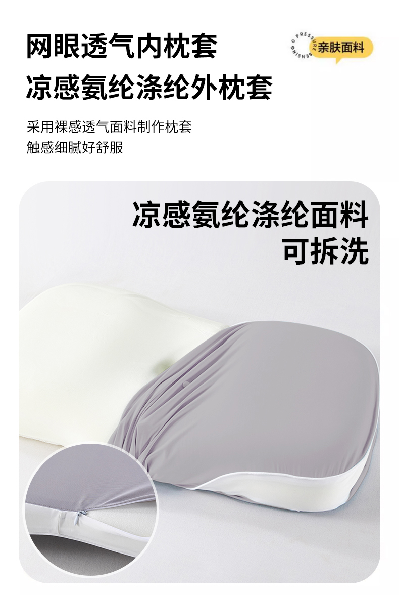 (总)纳斯顿家纺 2025新款零压助眠深睡枕油光布牵引枕枕头枕芯,白+粉,白+浅灰色