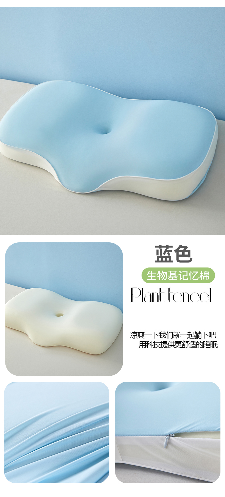 (总)纳斯顿家纺 2025新款枕头护颈椎助睡眠慢回弹牵引枕记忆棉枕蝶形人体工学多功能侧睡枕飞机枕牛角枕,蓝色,粉色,灰色