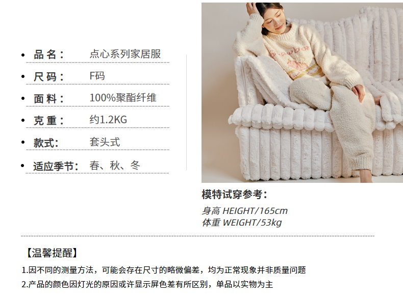 商品名称:(总)暖绵绵家纺 2025新款软糯慵懒舒适半边绒家居服-点心系列(零售价不得低于173元)