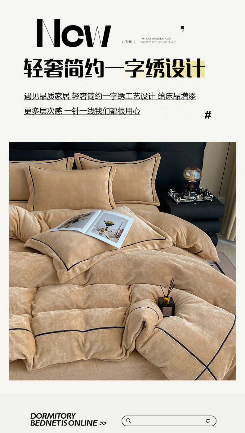 商品名称:卡诗兰2025款高克重加厚牛奶绒十字绣四件套 钻石浅紫