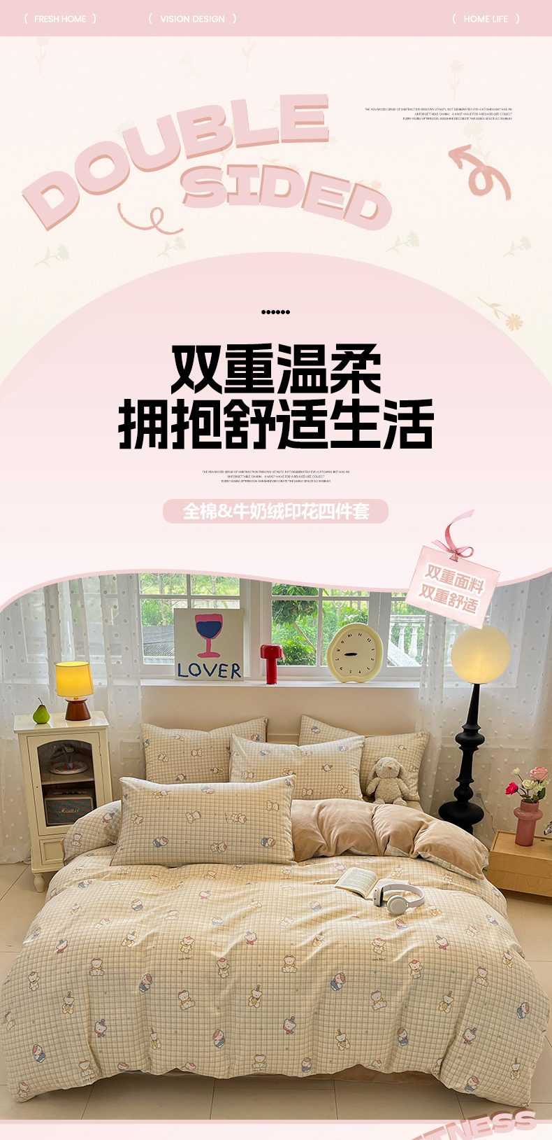 (总)吉象家纺 2026春夏新款全棉纯棉印花四件套,可爱星人,爱心小龙,鼻涕狗,嘟嘟小熊,花园梦梦,萌星,免兔野餐会,甜酱小猫(粉),兔兔梦境 米,熊熊时光,眼镜狗狗