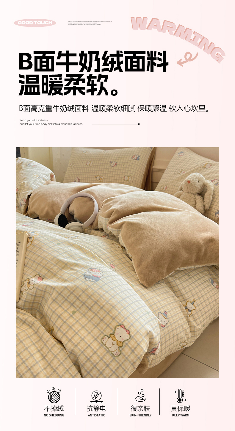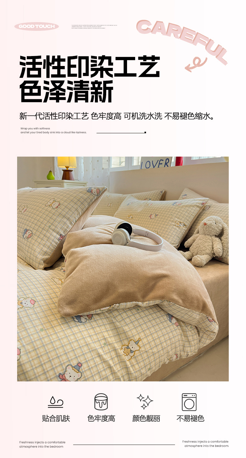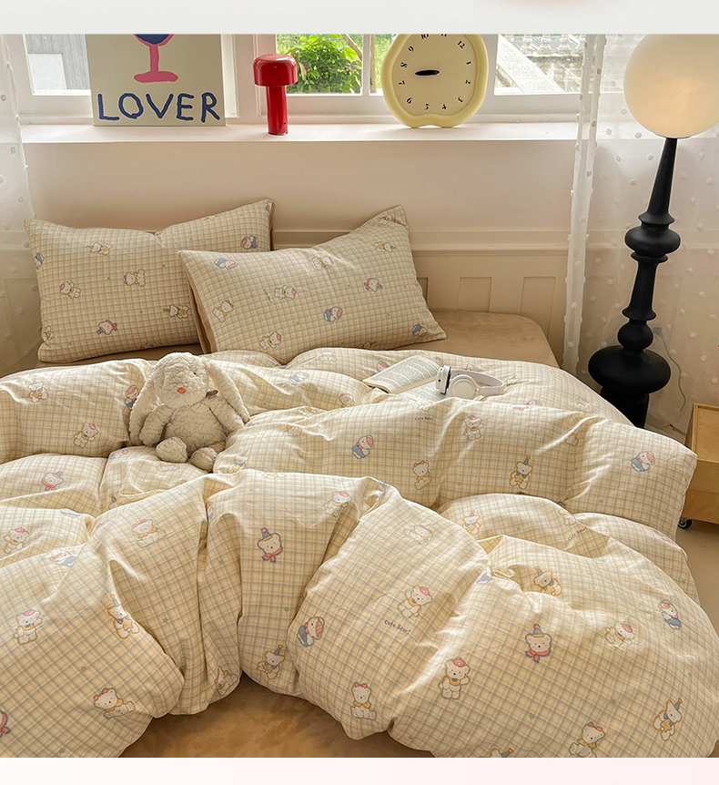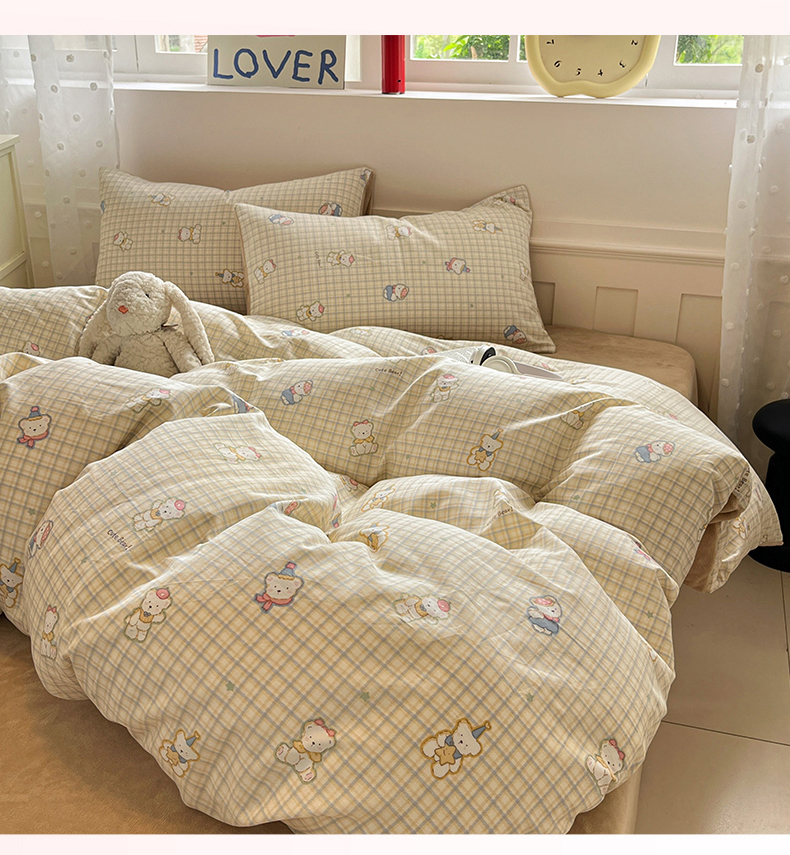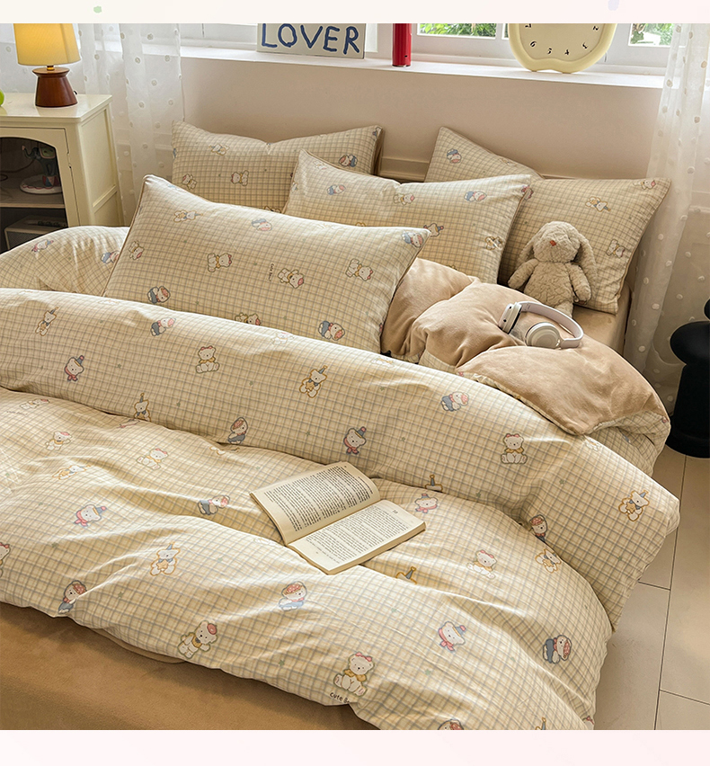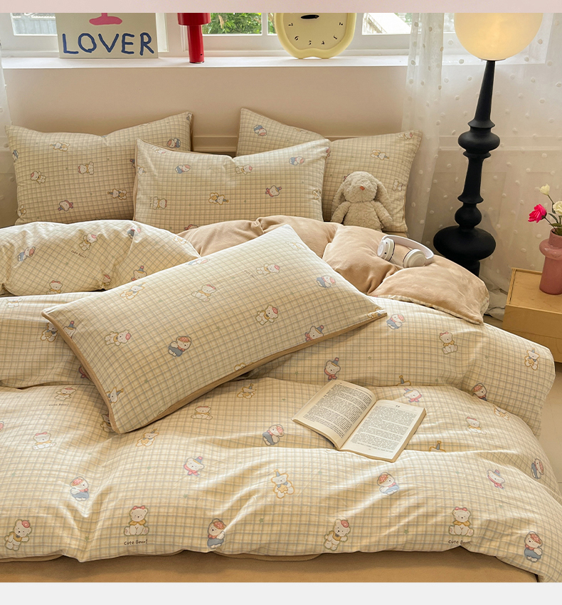商品名称:吉象家纺 2025新款全棉牛奶绒印花四件套 棉绒-格子熊